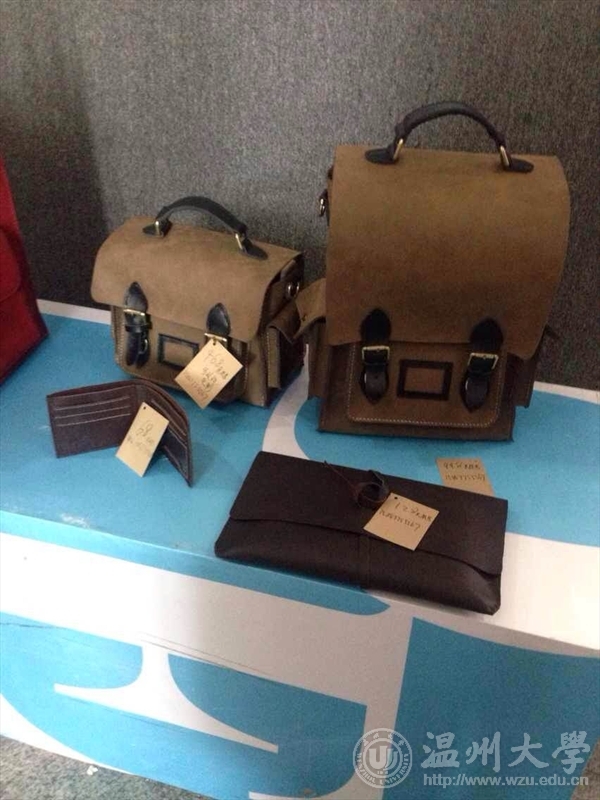 在结束了三周鲍铭莹老师的《皮饰品设计》的课程后,1月5日至9日,在美术楼向大家展示我们12鞋靴设计班的作品——纯手工真皮包,作品也会向大家以最低的价格销售。以个人意见来说我是比较赞同的,因为对于这样的一次课程展,开销也是比较大的,这样可以弥补些。对于对这门课很感兴趣的同学来说花费将近1000元都是值得的。 在我们刚刚布展的同时就引来了大量的同学和老师前来观赏与询价,有几位同学的包在刚刚展出就被预定了。 同学们的投入不仅在金钱上,也投入了大量时间与精力,在实验室一待就是一整天都是最平常的。刚开始的时候,手指被针扎、被小刀划伤都是常有的事,制作样板都是修了又修,改了又该改,包上每一个孔都是一个一个用工具打出来的,缝合的时候稍有不满就会拆了重新缝,虽然我们的课程只有三周,但是大家的努力不仅仅只是3周,有的同学在课程结束4周了还在继续制作。所以说每一个包都是同学们的心血组成也毫不夸张。这一次的课程展示,在锻炼我们动手能力的同时,无不展现了同学超强的精力与耐心,也让我们直截了当的明白了:付出多少回报就有多少。