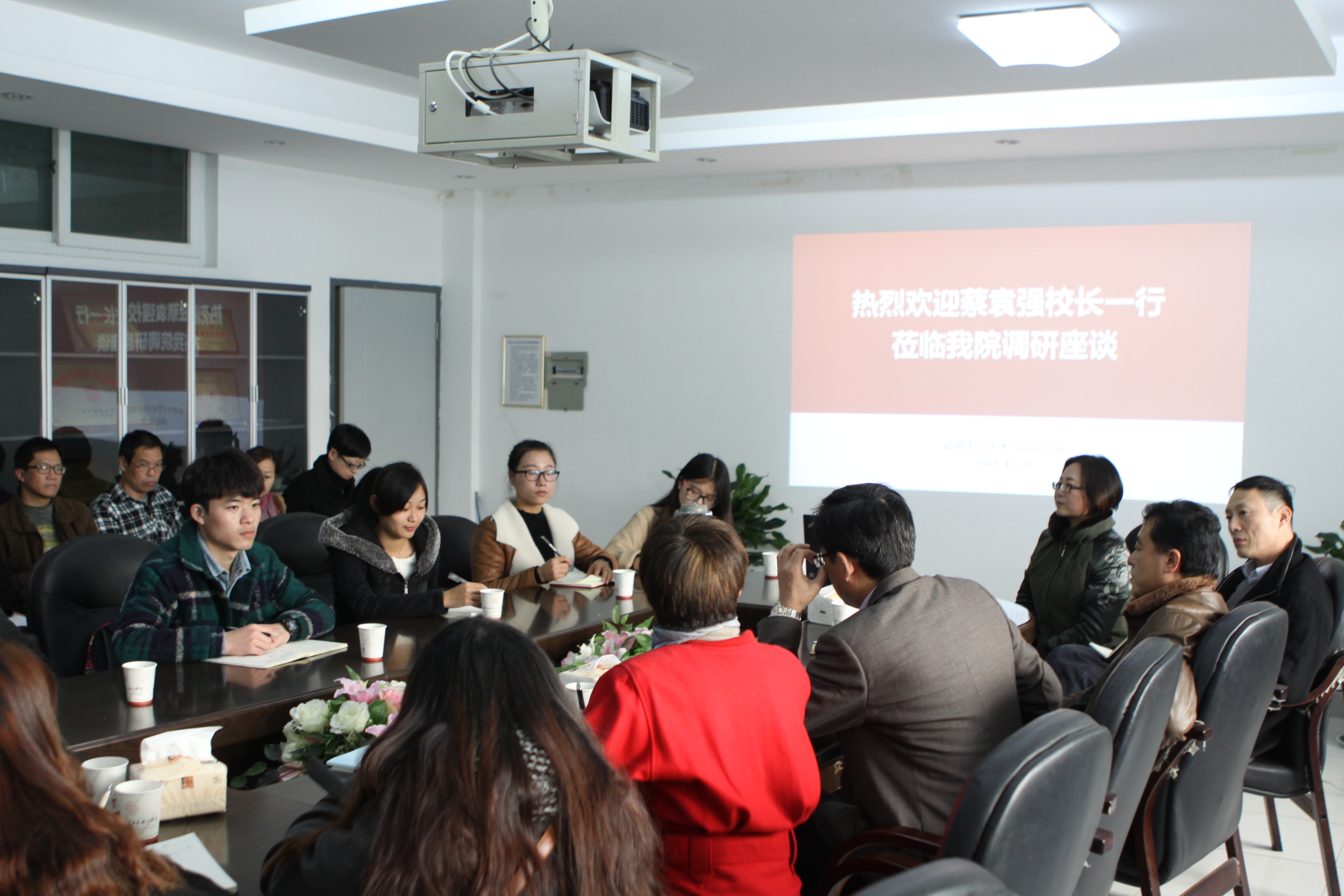 12月24日下午,蔡袁强校长一行莅临时时彩 调研座谈,座谈会在南校区美术楼2B216召开。出席会议的校领导还有牟德刚副书记、薛伟副校长,党校办、教务处、人事处、学生处、就业处、教师教学发展中心等相关职能部门负责人陪同调研,参加座谈的还有时时彩 班子成员、各科室负责人以及22位往届毕业生与在校生代表。座谈会主要围绕如何加强教风学风建设、提高人才培养质量与提升毕业生就业核心竞争力而展开。会议由教务处处长施晓秋主持。 座谈会在轻松和谐、亲切交流的氛围中持续进行。学生代表踊跃发言,在校生代表主要围绕如何更好的优化课程设置、丰富学习资源、改善仪器设备、浓厚学习氛围、拓展自习场所、加强实践教学、深化学习效果等问题提出中肯意见,正如一大二学生所说“希望老师在专业教学上,对我们要求再高一点,让我们学得更多一些,当我们毕业走上社会也不会被淘汰。”而毕业生代表则结合岗位历练后,对在校学习的留恋溢于言表,纷纷表示大学时光非常宝贵,希望老师在强化基础知识传授的同时,能结合学科专业发展出现的新知识、新技术、新方法的介绍与及时引入,对增强毕业生的就业竞争力将更有帮助。同时对美院学生日益浓厚的创业诉求,希望时时彩 能在场地申请、创业教育等方面加以更多的鼓励与关怀。 在认真听取学生代表提出的各条意见建议后,蔡袁强校长对美院学子能关注时时彩 发展、关心自我成长所提出的中肯意见与建议表示赞赏,正如他所评价一样,“美院学生的学风好,积极性高,创业氛围浓厚”。蔡袁强强调,时时彩 时时彩 各有关部门要结合学生的发展诉求,特别是多听取往届毕业生的反馈建议会更加有利于时时彩 人才培养方案的完善。结合教学改革,他指出要进一步解放思想,及时认真加以探讨与整改,强调要在新生进校后要及时安排专业导论课加以引导与介绍,对稳定与巩固专业思想,浓厚学风,推进人才培养都非常有帮助。 通过此次围绕人才培养主题与教学中心任务深化的调研座谈,时时彩 领导能来到学生当中,面对面诚恳提取学生的意见建议,对畅通交流渠道、增进师生感情、加强师德师风建设均有实际与深远的影响。
