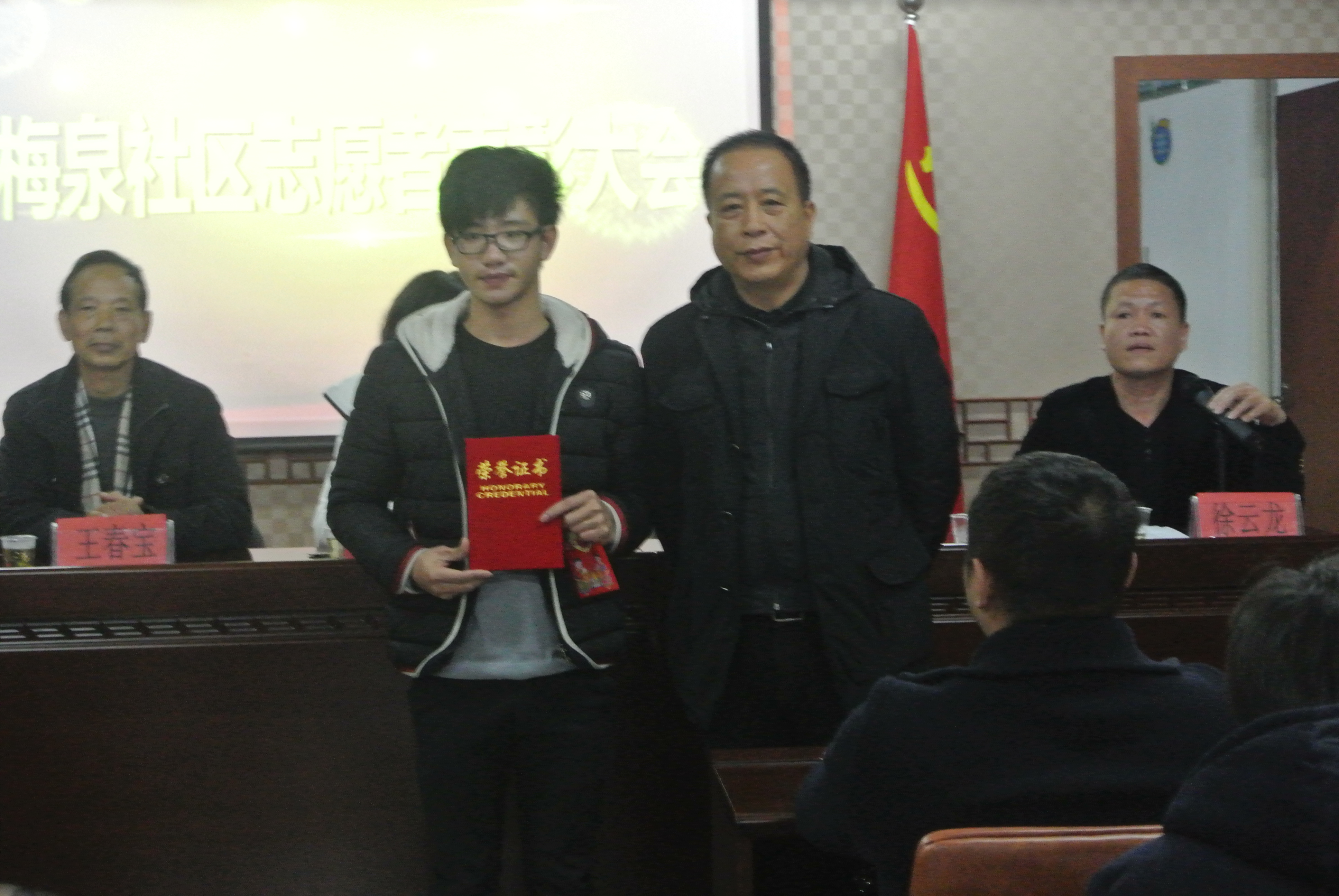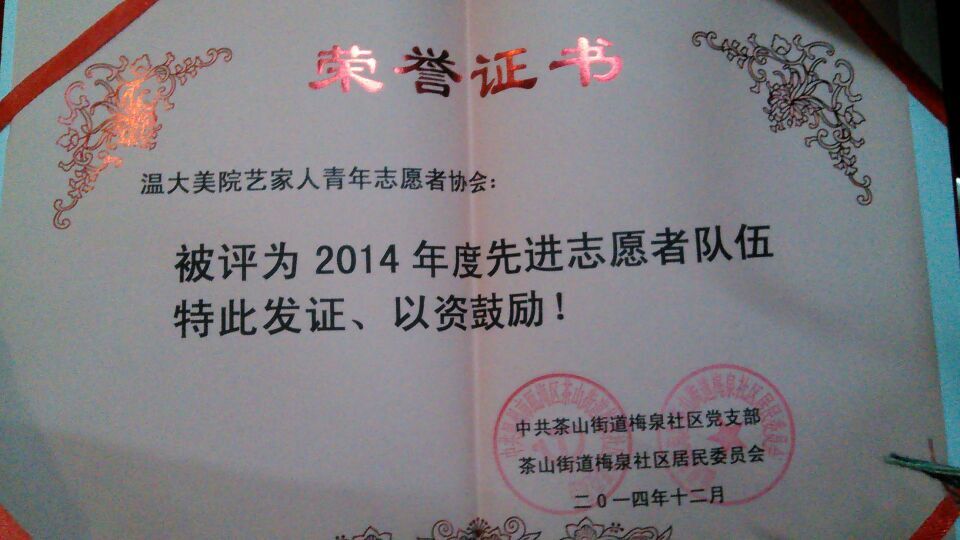 12月28日上午,梅泉社区居委会在道德讲堂开展了2014年梅泉社区志愿者表彰大会。此次大会由梅泉社区徐云龙委员主持,鲁建晓、王春宝、吴海燕等社区委员出席,时时彩 “艺家人”青年志愿者协会,温州医科大学,时时彩 城市时时彩 ,温州职业技术时时彩 的志愿者参与此次表彰大会。