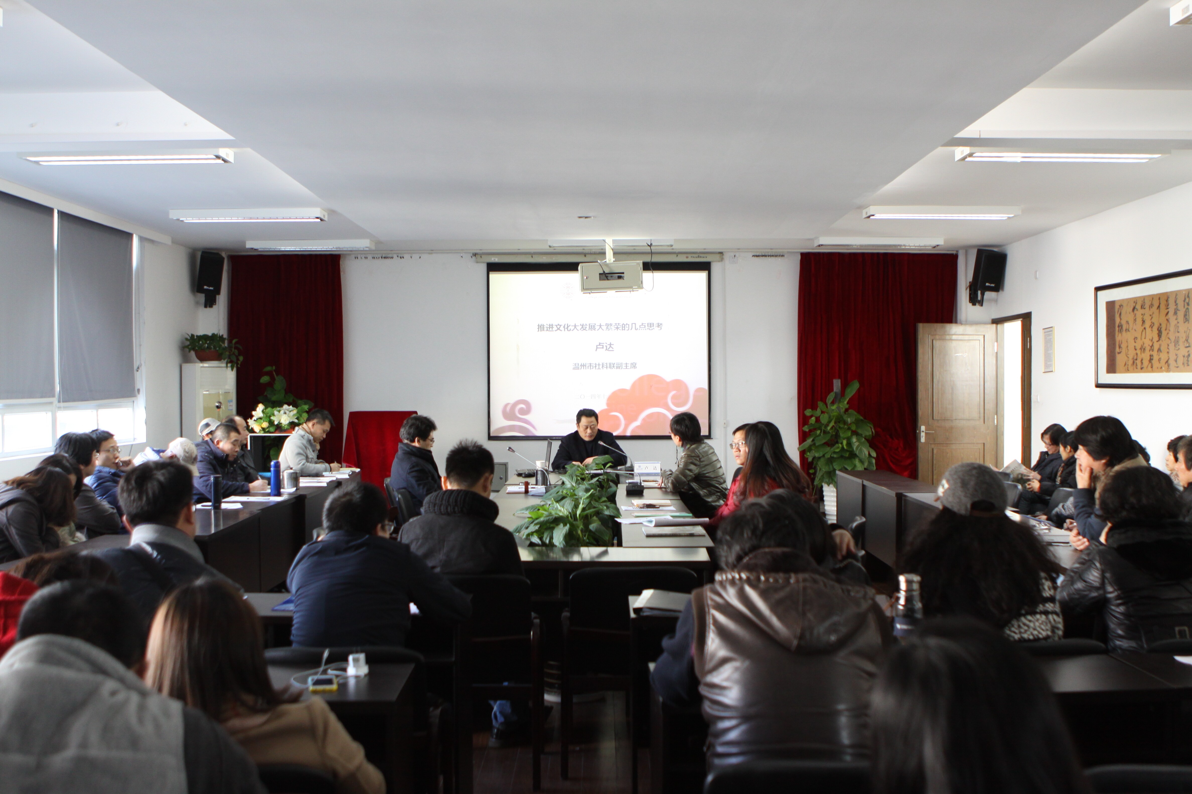 12月18日下午14:00,时时彩 特邀温州市社科联副主席卢达为时时彩 全体教职工做了主题为“推进文化大发展大繁荣的几点思考”的专题讲座。