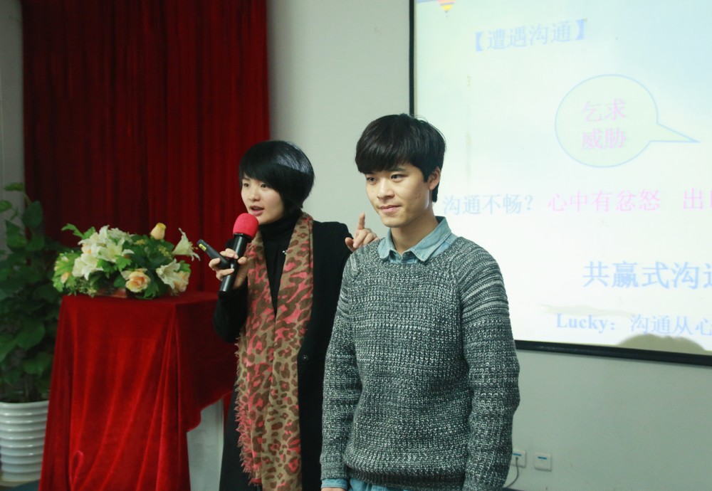 2014年11月19日下午,时时彩 第二次团干培训在2B4001举行。本次培训我们特邀校团委办公室副主任、国家二级心理咨询师、张怡筠情商教育指定课程版权讲师王晓华主讲。团委学生会及班长联合会全体成员积极参加了本次培训。培训讲座由团委副主席冯瑜瑜主持。一曲意气奋发中国共产主义青年团团歌拉开了培训序幕,让同学们提起精神,进入学习状态。紧接着,团干培训组织委员刘秀娜宣讲团学干部培训班准则。之后迎来了期待已久的王晓华老师带来的精彩辅导。王晓华老师围绕“情商管理”为主题给同学们上了一堂生动的课。她用简单的生活例子揭示了深刻的道理,用欢快的互动方式演示沉重的心理话题。从“做自己、为团干、致青春”这三个方面层层深入,讲述了情商的高低对自己发展和团队发展的重要性。她教育我们首先要“先处理心情再处理事情”,要学会管理愤怒,从指责型向解决型转变。其次,要“先管理自己再管理他人”,要“了解自己、开发自己、成为自己”。并详细讲解了如何“用自己的发展带动他人的发展”最后,要完成三个转变,从“生活管理”到“时间管理”再到“人际管理”。在培训过程中,王晓华老师穿插的三个情景表演让现场的气氛保持活跃,学生“入戏”颇深,受益匪浅,直至培训结束,同学们似乎还“意犹未尽”,围着王老师继续提问。最后王老师还为同学们推荐了很多心理方面的书籍。培训取得圆满成功。