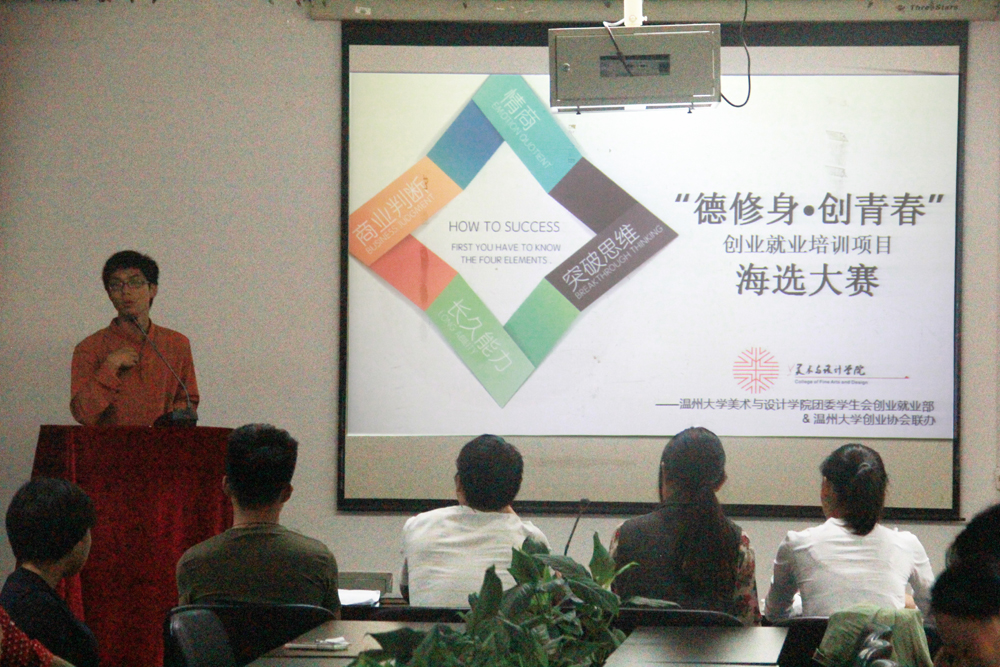 10月18日下午,时时彩 团委学生会创业就业部和校创业时时彩 创业协会联办的“德修身&创青春”创业就业培训项目的海选大赛在2B4001拉开序幕。团委副书记金李斌,创业就业部副部长张昇、胡霜霜,研究生代表李艳燕、张娜,共同担任了此次大赛的评委。来自时时彩 不同年级的同学参加了本次海选。