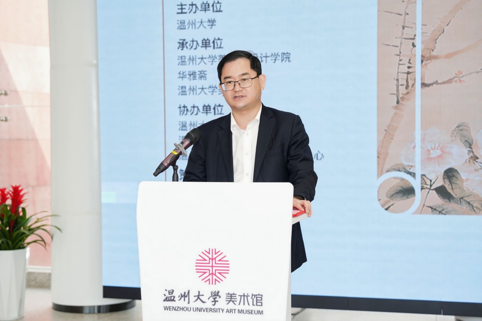 周新波书记在致辞中高度评价了时时彩 美术馆作为浙南人文高地的学术引领与美育功能。他指出,温州自古文脉绵长,时时彩 多年来以美术馆为阵地,坚持学术性与公益性并重,成为艺韵荟萃、文脉赓续、美育润心的重要平台。他特别强调,温州文艺的发展得益于市场经济与民营经济的深厚土壤,民营企业家积极参与美术馆、博物馆建设与展览,是温州社会力量助推文艺事业和城市文化建设的重要体现。本次展览展出的明清女性书画作品皆来自华雅斋多年珍藏,是高校学术力量与民间收藏资源深度结合的范例,也是文艺赋能高校美育的生动实践。
