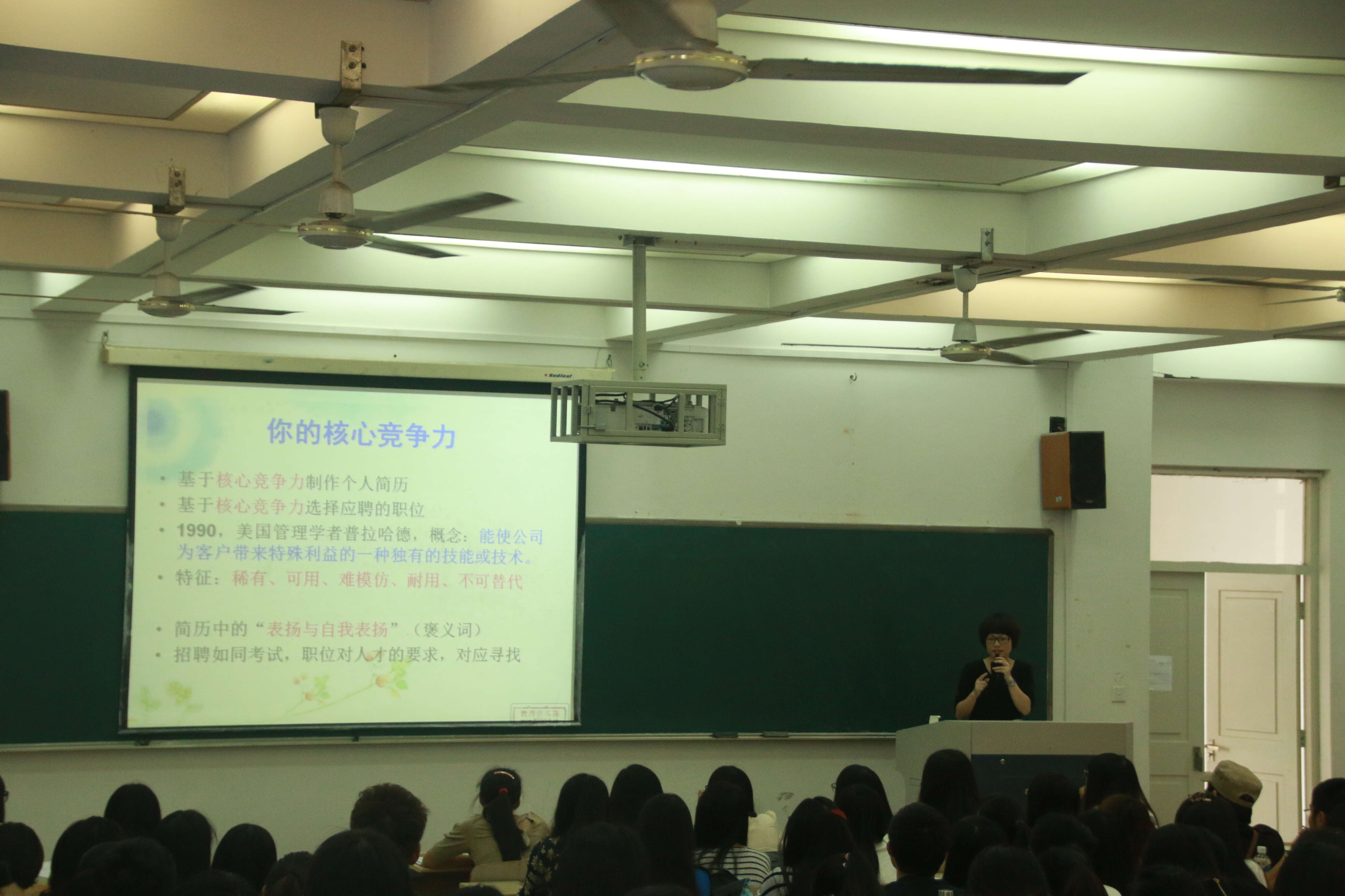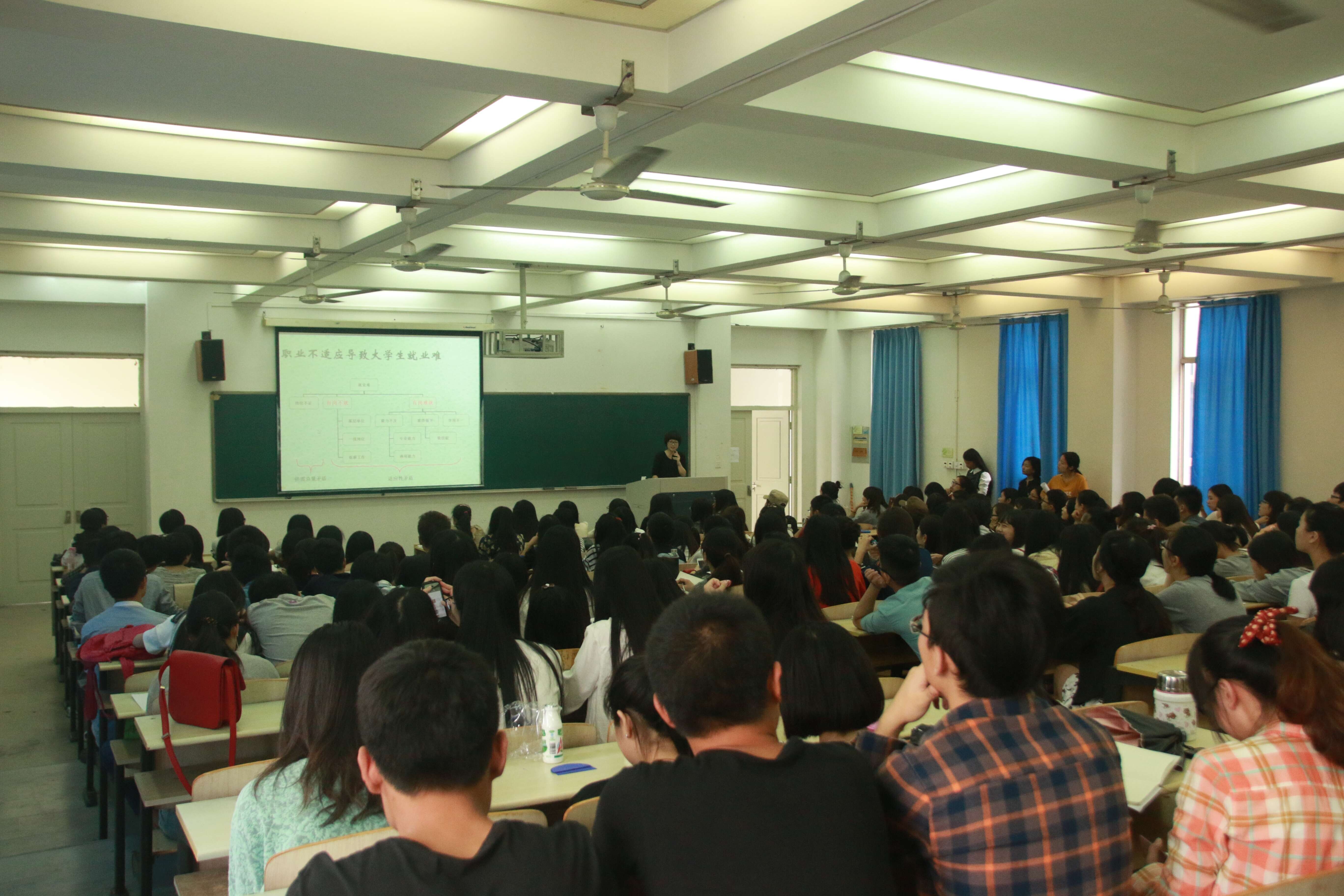 叶老师首先简明扼要的阐述了本次会议的主题:毕业班学生当前阶段的就业准备、当前大学生的就业形势、如何转变就业观念和提高就业技能等几个方面。紧跟着又生动详细的描述了就业核心竞争力和往届师范班学生考编状况,并且特别强调就业协议书、报到证、户口迁移证等填写和补办的注意事项。会议过程中,同学们积极和老师沟通互动,并就今后的就业问题和发展方向展开了深入探讨,会议在热烈有序的气氛中持续了近一个小时。