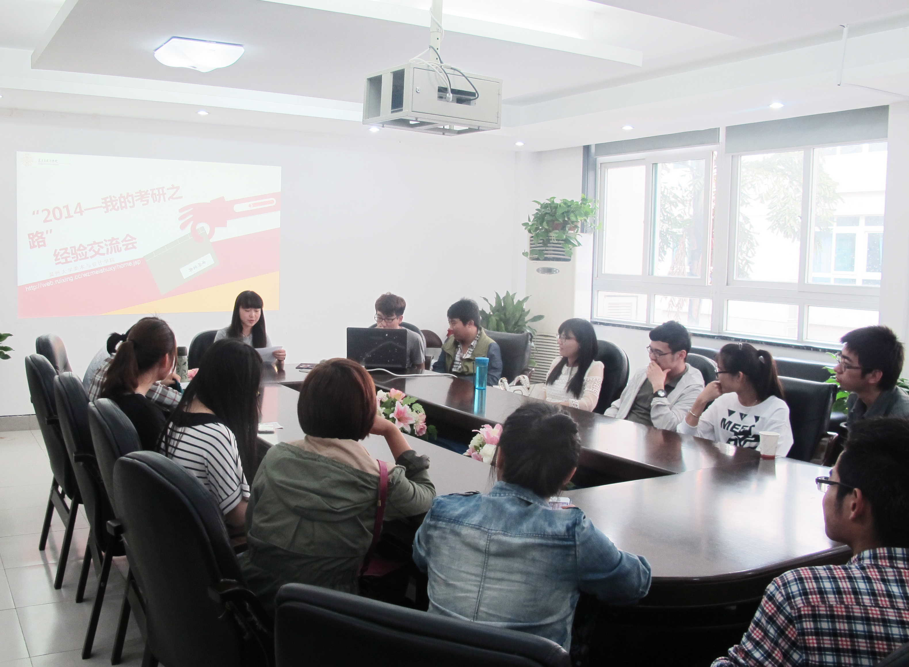 5月14日下午,由时时彩 团委学生会学术科技部主办的“2014梦想的延续——我的考研之路经验交流会””在2B-216顺利举行。学生科副科长叶如芳、辅导员杜茜老师和10级考研录取的同学出席了此次活动。