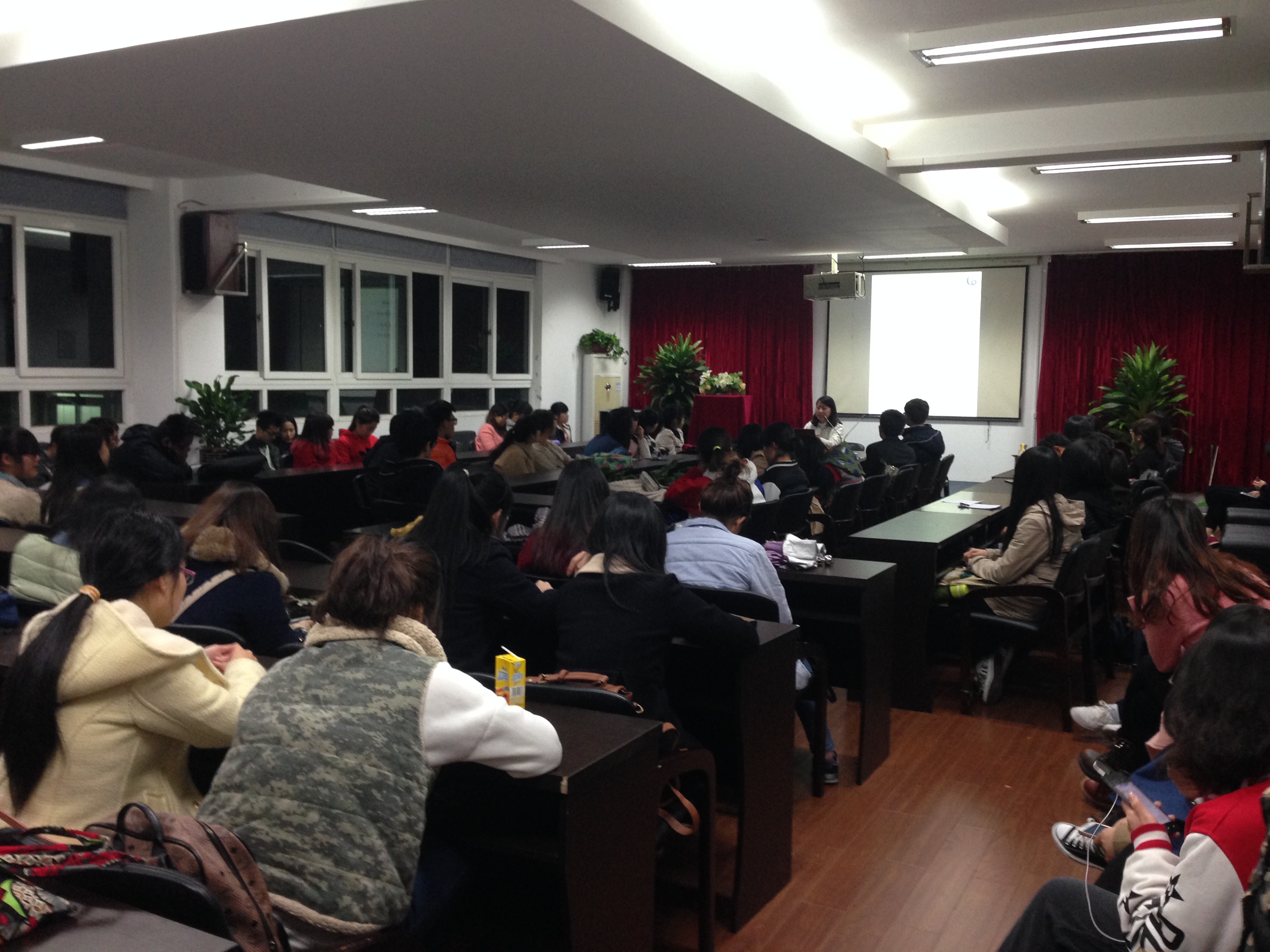 时时彩 2014年暑期社会实践培训班第二课时讲座于3月20日晚上6点半在2B4001如期召开,大会由创业实践部韩青青同学主持,特邀嘉宾12级优秀队长吴荣婷参加了会议。 主持人在会议中给13级美院新生回顾了第一期的暑期实践基本定义,为没参加第一课的同学增加了基本了解。之后,她为新生讲解了实践活动主题选择,社会实践策划等问题。接下来,特邀嘉宾——12级优秀带队队长吴荣婷同学为大家讲解带队经验和所遇到问题及解决方案。最后, 她为同学们展示了她去年带队的时时彩 重点队伍“鞋蕴”实践队。同时,她也希望今年能够选出更加有能力的队长。 这次大会,始终贯穿着融洽的氛围,在讲解后,同学们表现出踊跃的状态,期待13级暑期实践圆满完成。