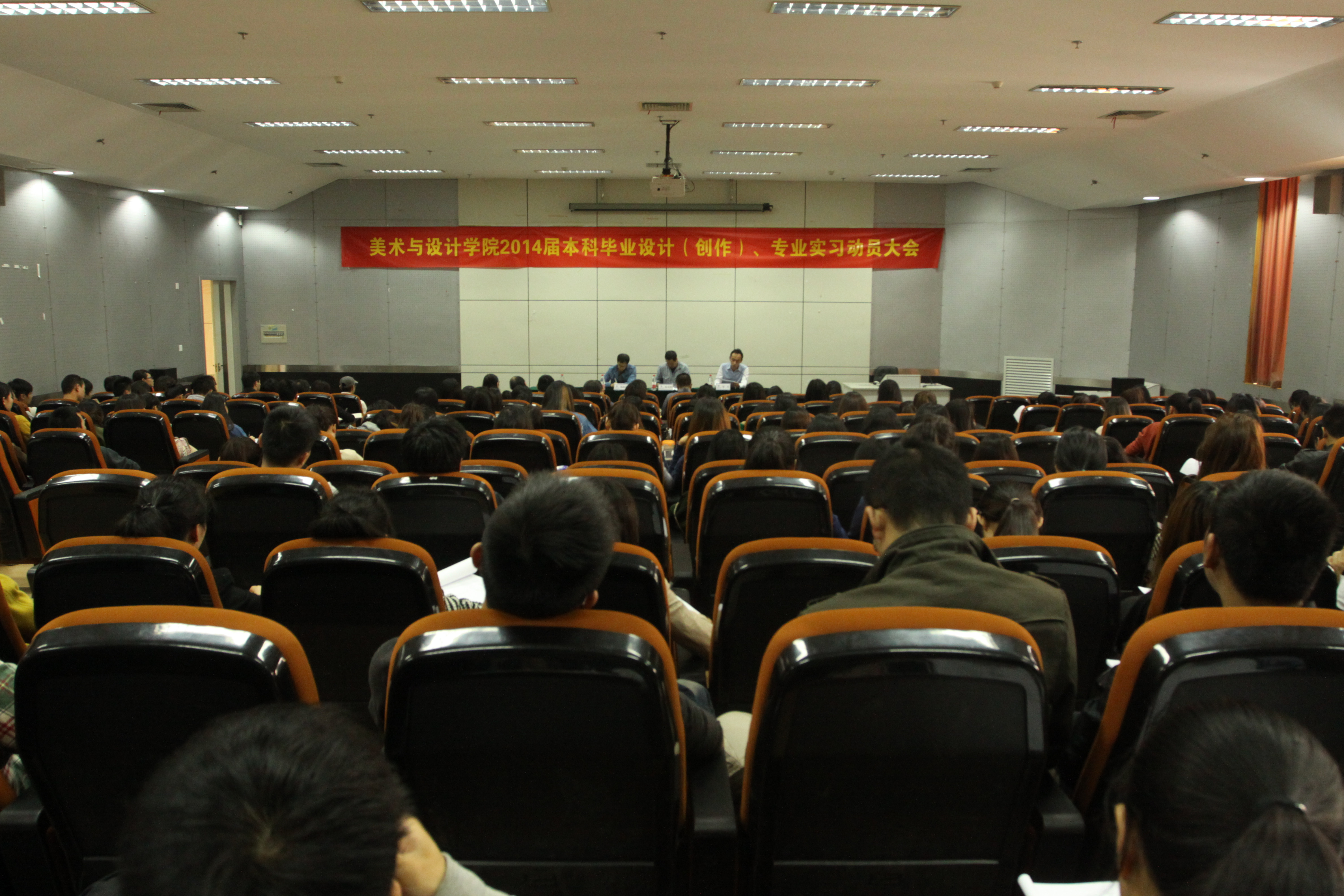 为顺利开展2014届毕业设计工作,11月8日上午,时时彩 2014届本科毕业设计(创作)、专业实习动员大会在时时彩 会展中心叶适厅举行。时时彩 副院长蔡可群老师,副书记杨振海老师,教学科邹青老师,及美术、设计、服装三个系的系主任、各位毕业设计指导老师及全体14届本科毕业生参加了会议,会议由邹青老师主持。