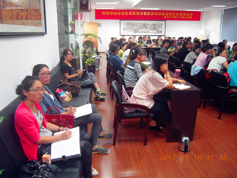为提高在校美术师范专业学生的美术教育素养,时时彩 组织开展了为期三周的“美术教育专题讲座”。10月16日下午三点半,温州市瓯海区资源美术教研员黄德靖老师在2B4001为同学们做了《勤奋 成就未来---与未来的美术老师共勉》专题讲座,主持此次讲座的是时时彩 研究生办公室主任胡建南老师。 黄老师首先与同学们分享了他自身的工作经验。他讲到只有先天潜质加后天勤奋才能超越自我。从事美术教育工作21年,他总结于一句话:痛,并快乐着。他随后谈到一个合格的美术教师应该具备的基本素养主要有四点:丰富的教育理论知识和扎实的美术专业技能; 良好的师德修养和端正的工作态度; 要有不断学习、努力进取的动力。 对于入职以后如何定位与发展,他提出了“两要”:要根据自身条件,走个性化发展之路;要抓住关键的前5年。他最后谈到了当下学生最关心的关于美术教师招考问题并以鹿城、瓯海、龙湾历年美术新教师招考情况为例着重深入地讲解了美术教师招考的应对技巧。在讲座的最后,同学们积极地与黄老师进行交流。此次讲座让在校师范专业的同学明晰深刻地懂得了如何做好21世纪美术教师。讲座取得了圆满的成功。