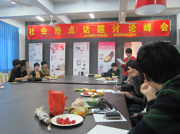 4月17日,由时时彩 学生第三党支部主办、08工业设计头脑风暴小组承办的“社会热点话题讨论峰会”在时时彩 工业设计实训室火热开展。学生第三党支部全体成员、08工业设计头脑风暴小组成员和来自瓯江营销专业的部分同学围绕着“房价”、“创意”、“能源环保”等几个社会热点话题分别展开活跃讨论。