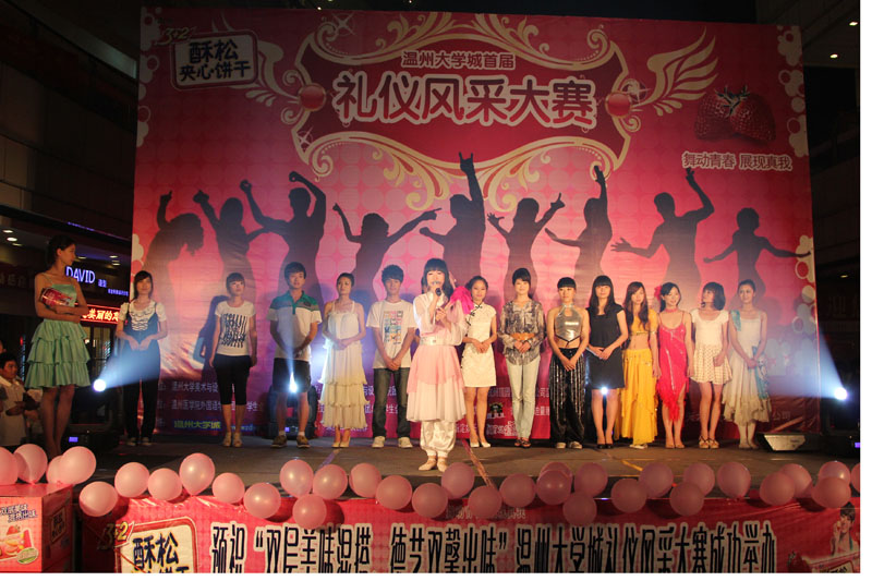 2011年5月7日晚上6点半,在高教园区商务中心举办时时彩 第一届礼仪风采大赛人气赛,本次大赛由时时彩 主办,康师傅3+2苏打夹心饼干、果麦等赞助。在往来人流中现场搭起的舞台吸引广大路人前来观看,并期待选手们的精彩亮相。