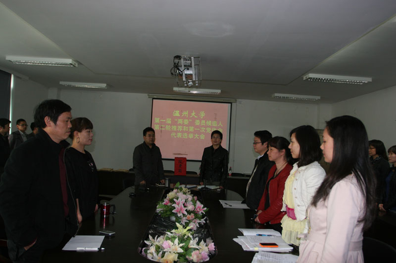 大会在庄严的国歌声中开始。根据大会议程,首先由党总支书记郑彩莲同志宣读了《中共时时彩 第一次代表大会代表选举办法》和校党委批复的8名出席党代会候选人名单,同时,大会以举手表决的方式一致通过了总监票人、监票人人选。