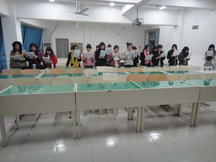 2011年3月27日晚6点30分,时时彩 服装楼2a306的教室里传出郎朗“颂”声,原来是时时彩 部分学子正为温大建党90周年大型诗歌朗诵会做着准备。虽然只是前期的准备练习,她们也没有懈怠,每个都朗诵的十分认真,情感丰富。此次活动主要是为了讴歌中华民族伟大复兴历程,颂扬党的光荣革命历史和丰功伟绩;展现温大学子拳拳爱国心、民族情;抒发青春与智慧,献于时时彩 改革发展的壮志情怀。