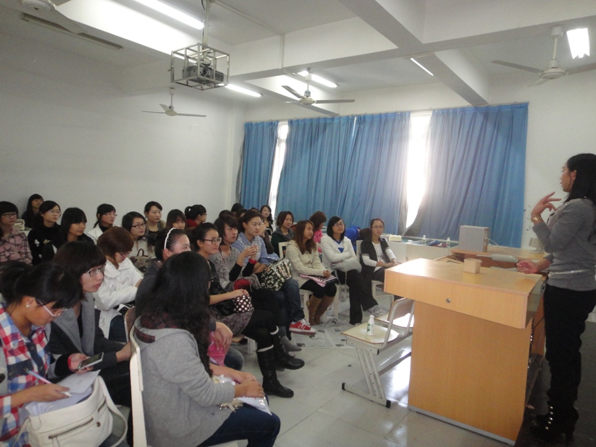 2010年11月20日星期六14:00~16:00,在美院2B3001,雪思美容院院长、医时时彩 WinGirl俱乐部指导老师朱来顺,为时时彩 的化妆培训素质拓展班画上一个完美的句号。 此次培训是朱老师在本学期第四次给大家辅导。其热烈的掌声,阐释着大家对本次培训的渴求和对朱来顺老师的喜爱。朱老师说,化妆是艺术。她要求人们在化妆之前先了解自己今天穿了怎样的服装,代表着怎样的形象以及自己的性格;希望每个人能了解自己面部的优点和缺点各是什么。然后,她让同学来当模特,一步一步地教同学们怎么样打底、修眉、调肤色、画眼线、眼影、腮红和唇彩。而同学们也是热情高涨,积极提问,踊跃参与其中。在示范的过程中,她也再三强调该注意的地方。比如定妆时要用散粉,补妆时要用粉饼,刷子半年洗一次,而在平时,只要用散粉洗就可以了……示范结束后,她则让同学们自己亲手实践。 这次培训,不仅让爱美的女生体验到了化妆带给她们在外表上的飞跃,更是让她们学习到了化妆的真正技巧。