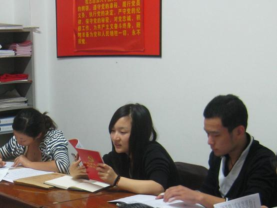 2010年10月15日,时时彩 学生第五党支部在2号楼“党员之家”成功召开以宣读党员创先争优承诺书和党员结对新生为主要内容的支部会议,学生第五党支部全体党员参加了此次会议,支部书记金维主持会议。会议主要有三项内容:首先,第五学生党支部书记金维带领全体党员分别宣读了个人的“创先争优”党员承诺书。承诺书中大家结合个人实际情况制定出详细的承诺计划,并在承诺书上郑重签字、按指印。其次,针对党员联系新生活动,再次重申各位党员所负责班级,会议要求每位联系人必须对所负责的班级进行全面了解,为以后的党员发展工作夯实基础。最后,支部书记金维就整理本次即将进入预备党员队伍的同学资料工作中可能出现的问题做出了详细解释,对资料填写过程中可能出现的错误进行了纠正。