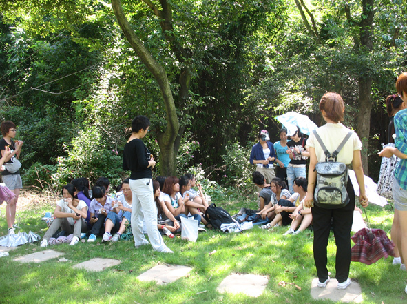 9月23日上午,服装系2010级服装设计2个班的学生在班主任叶茜老师的组织带领下乘坐校车前往仙岩风景区开展“快乐中秋”主题班会。在景区的一块草坪上,大家欢聚一堂,叶茜老师为每位同学在这个特别的日子里送上了一份精美的月饼以表中秋祝福。据叶老师表示,当年其在法留学时过中秋曾感受到的是独在异乡为异客的心情,而现在很希望能给大学新生带来一份大家庭的温暖气氛。 此外,借此活动,还推选了班委,其中由2个班的文艺委员带头预演了迎新晚会的节目,同学们展示着各自的青春风采,度过了大学中的第一次柔软时光。