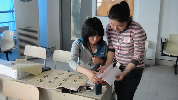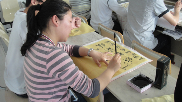 近日,时时彩 主办的每周一课书法培训素质拓展班与往常一样在时时彩 教学楼2B308准时开课。时时彩 07级优秀学生何玲珑同学担任执教,为来自全校各院学员40余名书法爱好者拉开书法世界的大门。 从开班至今,何玲珑同学细致的讲解早已赢得学员们的一致欢迎与肯定。且何玲珑同学亲切和煦的语言更在授课时无形中拉近了老师与学员的距离。墨香阵阵,老师与学员之间诸多互动,交流热切,一派和谐的氛围。书法培训不仅让众多同学学到了书法的技法,更是在练习过程中修身养性,感悟中华精粹的深远魅力。不少学员作为首次零距离接触书法的初级学者,在经过几周的潜心训练,通过大量的书法练习,完成了由量变到质变的过程,不少优秀作品已脱颖而出,喜获丰收。 书法作为中国的国粹,其历史之渊源,内容之精深,无不值得我们进行深入挖掘。作为当代大学生,作为炎黄子孙,我们有义务有权利将之传承于今后,传播于世界,愿更多的人重视书法这一国粹,珍惜书法这一中国瑰宝。