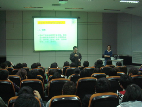 2010年4月25日,校心理健康中心于南校叶适厅开展本学期朋辈辅导第二次培训。本次培训特邀请了时时彩 党总支书记、国家二级心理咨询师郑彩莲教授主讲“大学生情绪管理”。来自各个时时彩 的心理委员和寝室长等300余名学生参加了本次培训。 郑教授以“一分钟相识”心理游戏调动了同学们的热情,在热烈的气氛中开始了本次讲座。随后,郑老师从情绪内涵入手,解析大学生中常见的情绪困扰,分析了情绪的特点,并详细阐述了情绪的控制与调试的方法。郑教授通过与现场学生的互动、丰富的例子,深入浅出,带领同学们探索神秘的情绪世界,强调学会自我调节情绪,方能拥有良好的心态,并为预防“心理感冒”开出了良方。希望通过本次讲座,同学们能更好地调适、掌控情绪,微笑面对每一天。