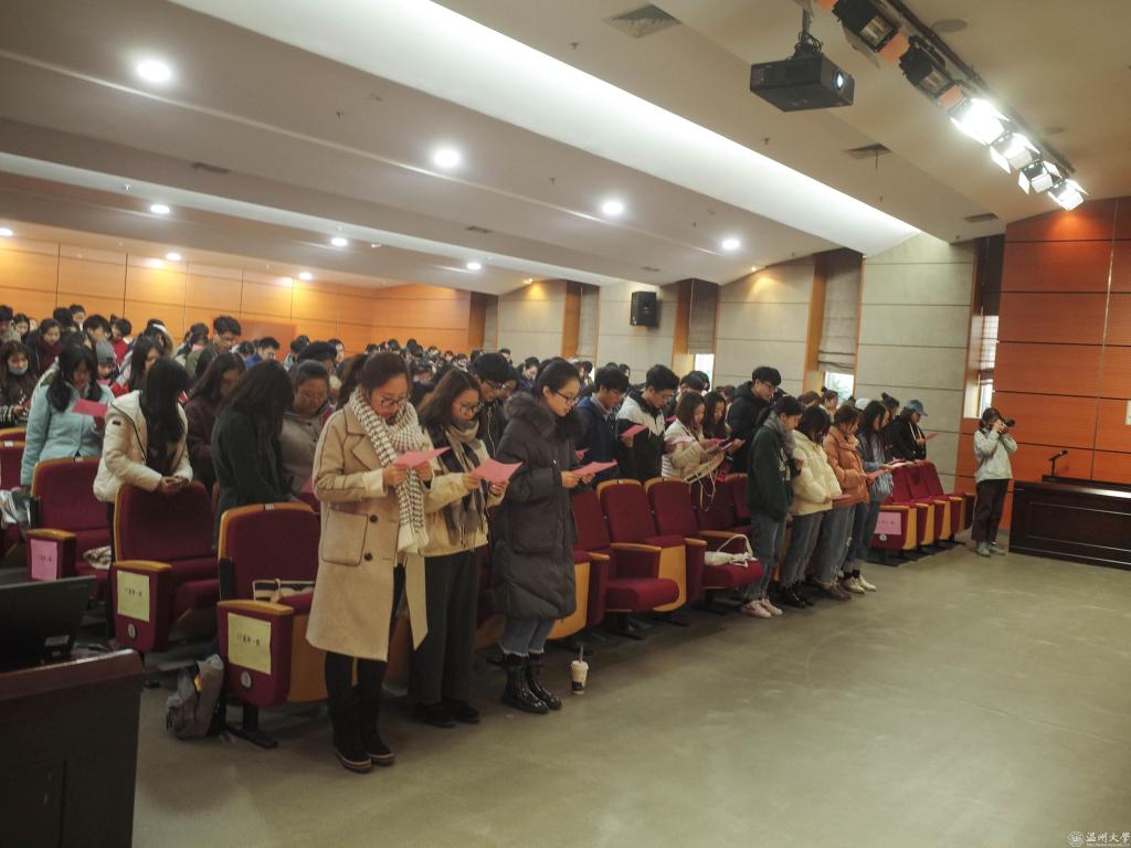 2018年1月10日下午,时时彩 在雁山厅召开2017-2018学年第一学期考风动员大会,时时彩 党总支书记张丽萍、副院长谢子静出席大会,17级全体同学参加会议,大会由时时彩 党总支副书记杨振海主持。 张丽萍书记在动员讲话中重申了考风考纪的重要性和作弊的危害性,她强调学习在于平时的点滴积累,来不得弄虚作假,作弊不能弥补学习上的漏洞,而是一种自欺人人的行为。张丽萍书记还鼓励同学们认真备考,争取考出好成绩。她强调:“大学里的每一次考试都是接受考核认证自我的途径,加强考风建设营造公平的考试氛围,既是每个同学的愿望也是每个同学应该肩负的责任。所以希望同学们在这次考试中能诚信做人,亮出真实的成绩,展现真实的自己。”杨振海副书记根据学生手册相关条例告诫同学们一定不能碰这个底线,在考试过程中不仅仅要交出反映专业知识水平的考卷,更重要的是在考试中要交出诚信的品行之卷。 17级全体同学在学生代表的引领下宣誓,承诺端正考试态度认真复习积极备考。 学生处吕乐老师进行大学生文明修身考风考纪专题讲座。学生处吕乐老师通过精彩的演讲和亲切的互动,加深了同学们对考试作弊的危害的理解,相信同学们也一定会用真实的成绩证明自己的实力,成为一名诚实守信的大学生。 大会还总结了本学期学风考勤和晚自习考勤情况,与会领导对本学期优秀纪检委员进行了表彰。