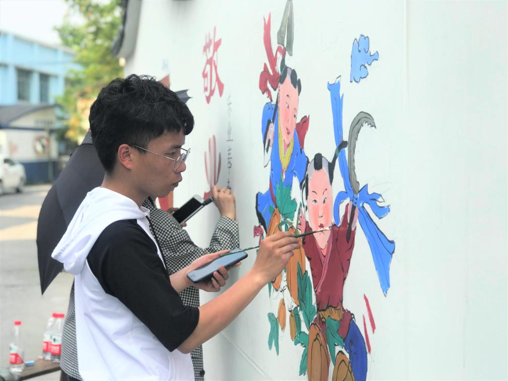 4月22日,温大美院“艺家人”青年志愿者协会的志愿者们来到瓯海区东边村,开展了以社会主义核心价值观为主题的墙绘活动。