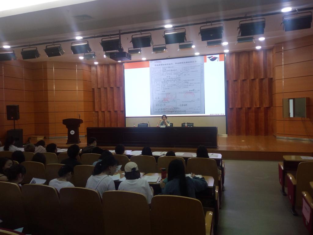 彭小媚老师围绕毕业、就业流程以及流程中相关文件的规范化填写展开,具体包括就业政策说明、教学教务、就业招聘、重要事项。其中,就业招聘包含校内招聘会的信息和注意事项:投递简历、就业协议、劳动合同、就业工作证明;而重要事项根据以历年历届毕业生遇到的问题,为方便毕业生顺利就业、毕业,着重强调毕业生办理毕业手续的整个流程,其中包括《高等时时彩 毕业生登记表》《时时彩 学生档案袋》《报到证》《浙江省高校毕业生就业接收函》以及各个毕业班毕业留念的时间安排等工作。接着教学科邹青老师讲解了毕业生图像采集的相关流程和注意事项。最后叶筱卉老师强调就业的意义,同时勉励同学们要学会在学习中合理安排时间,明确自己的短板,努力弥补不足之处。