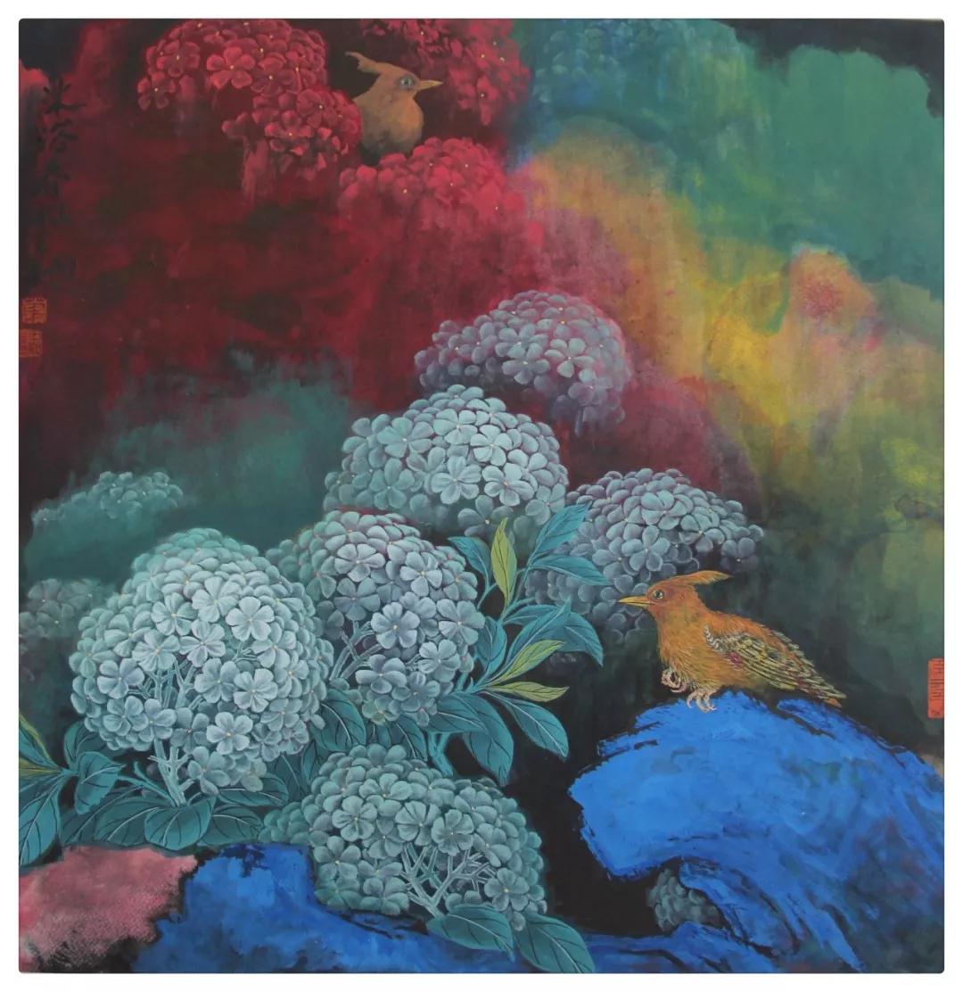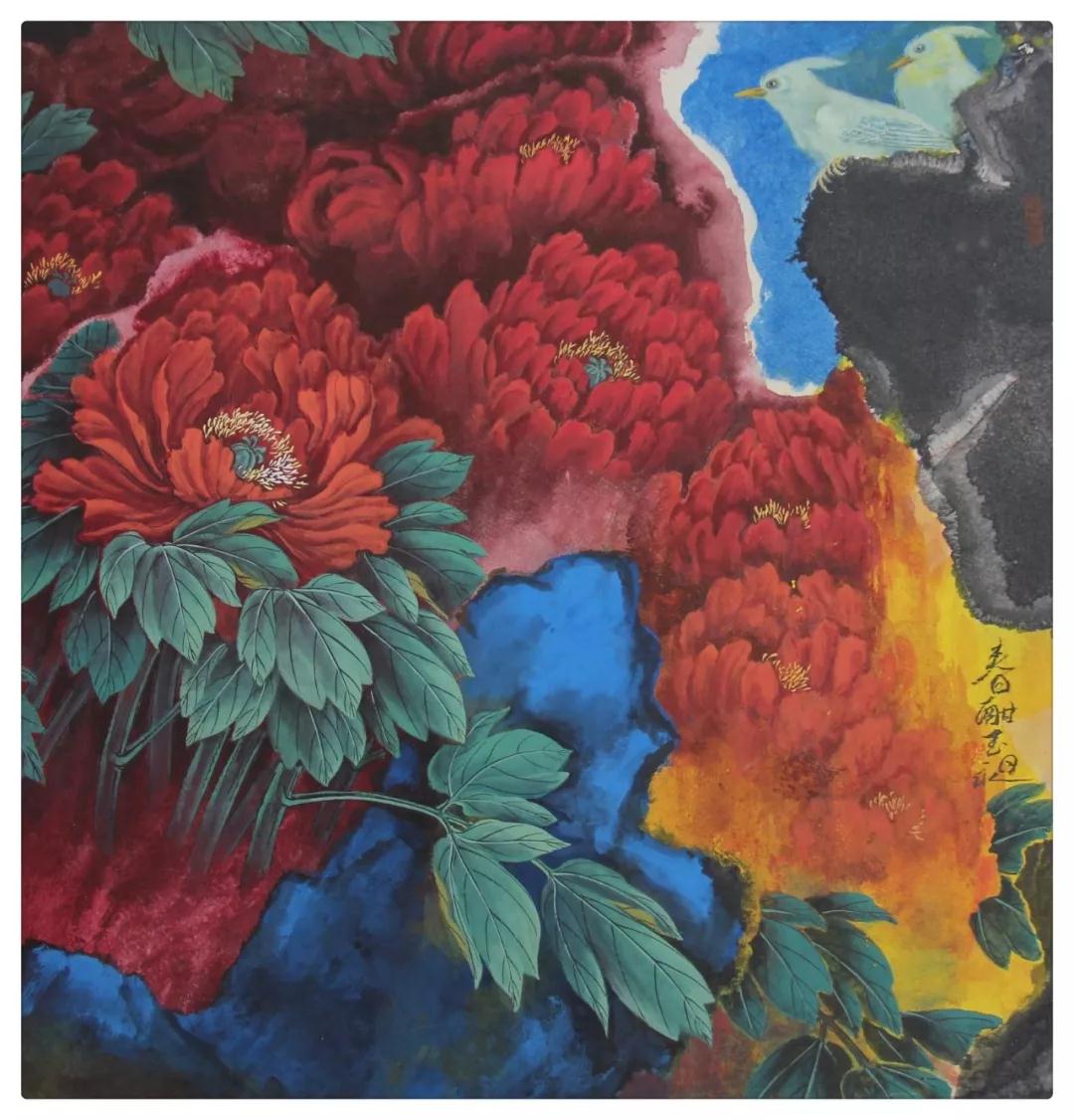 叶玉昶教授历时半年创作的二十余米泼彩花鸟长卷图