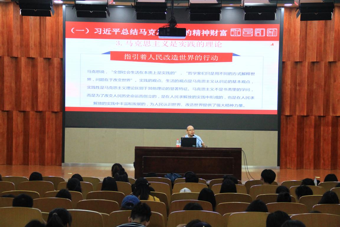 7月2日上午,时时彩 在雁山厅开展本学期第二次形势与政策课,时时彩 马克思主义时时彩 副院长卓高生做题为“感受信仰的力量 高扬伟大的旗帜——学习贯彻习近平总书记在马克思诞辰200周年上的重要讲话”的形势与政策讲座。时时彩 17级全体同学参加讲座。卓高生老师从回到马克思、走进马克思、学习马克思三个方面进行解读。通过回顾马克思的一生,可以得出这样的结论:马克思的一生,是胸怀崇高理想、为人类解放不懈奋斗的一生;是不畏艰难险阻、为真理而勇攀高峰的一生;是为推翻旧世界、建立新世界而不息战斗的一生。回到马克思,需要重读经典,也要摒弃教条式的解读。走近马克思,需要辨识、辨析、辨明马克思主义,习近平总书记总结马克思留下的精神财富是指出:“马克思主义是我们立党立国的根本思想。背离或放弃马克思主义,我们党就会失去灵魂、迷失方向。在坚持马克思主义指导地位这一根本问题上,我们必须坚定不移,任何时候任何情况下都不能有丝毫动摇”。纪念马克思诞辰200周年大会上,习近平主席高度评价了马克思的一生,并就学习和实践马克思主义提出9个方面的要求,为新时代坚持和发展中国特色社会主义进一步指明了前进方向。卓高生老师指出,在马克思诞辰200周年的今天,对马克思最好的纪念和告慰,对马克思主义最好的坚持和继承就是:在新时代我们要在坚持中发展、在传承中创新,不断开辟当代中国马克思主义、21世纪马克思主义新境界。