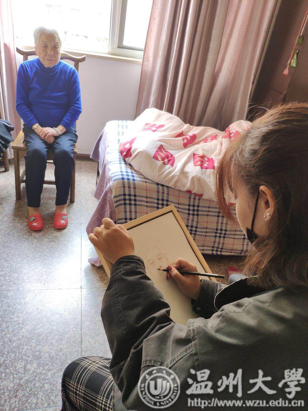 10月21日,温大美院艺家人青年志愿者协会在重阳节之际携手温大美院的同学们前往温州市名盛敬老院,开展了以“关爱老人,赠送爱心,回馈社会”为主题的慰问活动。给老人们送去了一份温暖,让同学们更加富有尊老敬老的社会责任感。 早上八点,同学们全体集合,茶山的天再冷也不能动摇成员们的心。我们有序集合,共同乘公交车前往鹿城区名盛敬老院。到达目的地后成员们有序合作,为了不影响老人们的生活,每个成员都小心翼翼,生怕打扰到老人。之后我们分发给成员绘画工具,让成员自由发挥。可以画速写、画风景、也可以画画老人们的生活画,并用相册精美的装订起来。同学们以专业的绘画水平和超高的社会责任感尽心尽力!中途,有些老人害羞,但在成员的耐心下欣然接受了同学的绘画邀请当上了模特。我们也受到了一些小挫折,比如在与老人沟通中因为方言不同不好交流,但在我们同学的耐心之下和来自温州同学的“翻译”下我们与老人不断传来了一声声的欢乐。其中一位96岁高龄的阿婆另成员印象最深,阿婆手捧着自己的全身像乐呵呵的像她的老伙伴们“炫耀”,连吃饭都放在手边,一步也不愿离开。爱不释手的阿婆向我们推荐了另一位阿婆——杨阿婆,杨阿婆也达到了90多岁的高龄,杨阿婆退休前是一名教师,她的女儿也是一名美术生,听说楼下来了一群会画画的娃,开心的不得了。同学么听到这个消息纷纷请求前往绘画,阿婆还特意梳了头发……老人们一个个有趣的动态不停的跃然在纸上,养老院里每一处都如魔力般充满了爱。志愿者们的工作也十分顺利,每个人都感到深深的快乐和自豪。在临走之际,我们拍下了弥足珍贵的合影,然后有序的带回校园。 通过这次活动,不仅让同学感受到了与老人耐心相处的快乐,也弘扬了尊老敬老的中华传统美德。相聚的时光总是短暂的,同学们依依不舍,但是一颗关爱老人的种子在同学们的心里播种下去了。