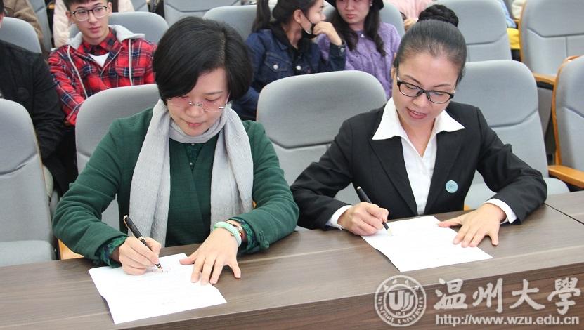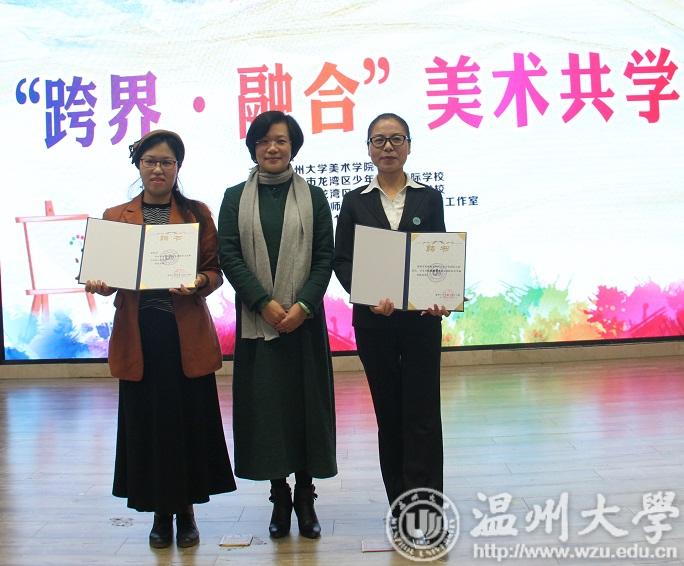接下来,双方签订了时时彩 教师教育实践基地协议,给龙湾区的两位名师颁发了校外指导师聘书。