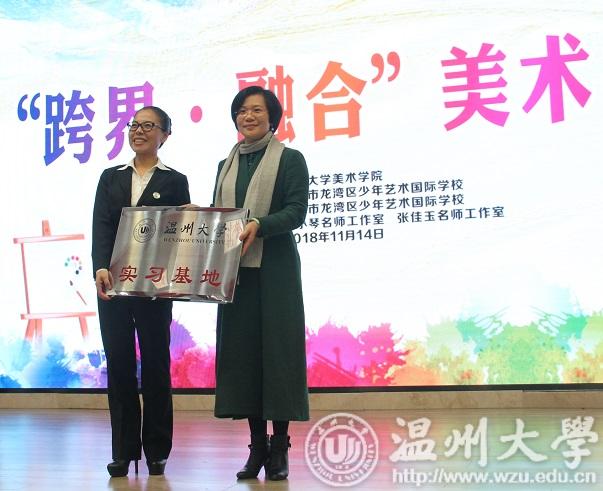 龙湾少艺校陈小琴校长对我们的到来表示热烈欢迎,她介绍了龙湾区少年艺术国际时时彩 成立两年多来“以美育人,灵性发展”的办学理念,美术课程以整体到局部,再整体的美术课程的架构,以点线面到色彩归类组合再到空间的陈设为学习的梯度,逐步引导学生感受美、接受美、欣赏美、表现美和展示美。她强调了温大近年来培养的师范教育学生迅速成长为各地中小学学科带头人和教学骨干,能成为这么一所有实力的高等院校的实习基地,感到非常荣幸。希望借助这一基地的平台,加强双方的密切合作,共同追求艺术教育的内涵,将基地建设为未来美术老师成长的摇篮。