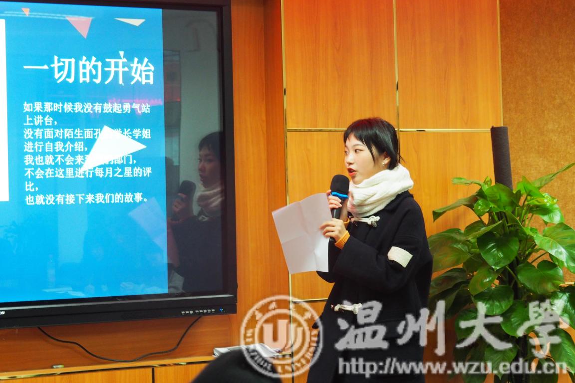 首先是上月“每月之星”的评选。各部门的干事们带着精心准备的ppt上台演讲,干事们的演讲内容逻辑性严谨,结构完整合理,层次分明,构思巧妙,引人入胜。干事们都表示自己在团学得到了成长,并在成长中学会感恩、学会团结、学会自立……学会了很多东西。接着,会议进行第二项,各部长汇报和安排工作。各部门部长报告了近期活动情况,并根据前期各活动事项、所得成果、存在问题及改进方面等内容方向布置了下一阶段工作。随后,主席团与李雪涛老师接连发言。主席团表示历经重重考验和磨砺,团委学生会各部门顺利完成了各项既定工作任务。明确认可了各个干事都在各自的岗位上倾注自己的汗水与热情,把宝贵的时间和充沛的精力奉献给了团学的各项工作。但也提出金无足赤、人无完人,在以后的工作中,我们要吸取失败的教训,认真总结成功的经验,虚心地接受院领导、老师的批评和教育,接受全院学生的监督,要更加努力的学习,不断更新自己思维空间,扩充自身的知识的阅历,改变自身的不足点,进步发挥团学工作在时时彩 的模范带头作用,为时时彩 献出自己的微薄之力。李雪涛老师也肯定了学生干部们近期工作的辛勤付出,不辱使命,按时保质保量完成了时时彩 交付的任务,达到了预定目标,并表示我们团学的全体成员都应该时刻树立着“为同学服务”的意识,像认真对待每天的查早餐一样认真对待每件事,力争做好每件事,配合时时彩 开展活动以提升团学的号召力和战斗力。
