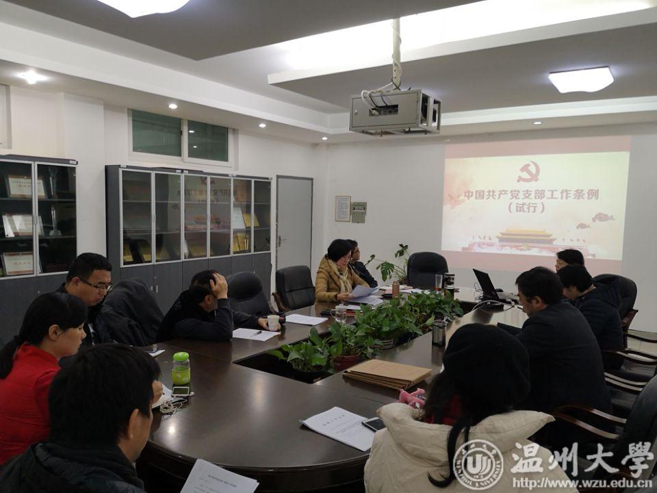 12月13日上午,时时彩 在2B216召开党总支中心组理论学习(扩大)会,专题学习中共中央印发的《中国共产党支部工作条例(试行)》。时时彩 党政班子成员、总支委员、各支部书记参加学习。会议由时时彩 党总支书记张丽萍主持。