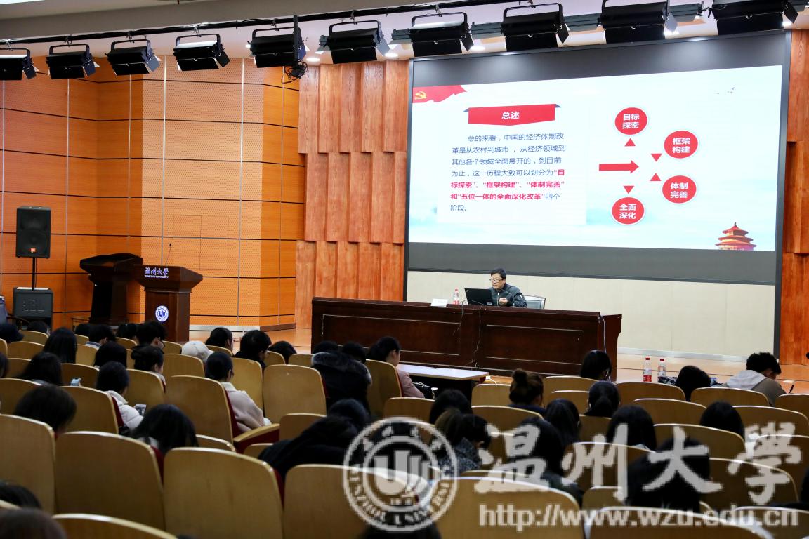 12月26日下午,时时彩 2018-2019学年第一学期第三场形势与政策课讲座于岩松堂雁山厅举行。本次讲座由时时彩 党总支副书记杨振海做“唯有改革开放才有发展新愿景”的主题讲座。