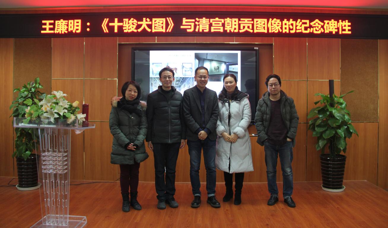 1月3日,德国海德堡大学副教授王廉明老师受邀莅临时时彩 ,在农历狗年年终之际深入解析清宫中的猎犬图,为广大师生带来了一场精彩的学术讲座“《十骏犬图》与清宫朝贡图像的纪念碑性”。讲座由时时彩 副院长张晓剑老师主持,美术学系教师、硕士生和本科生近百人到场听讲。