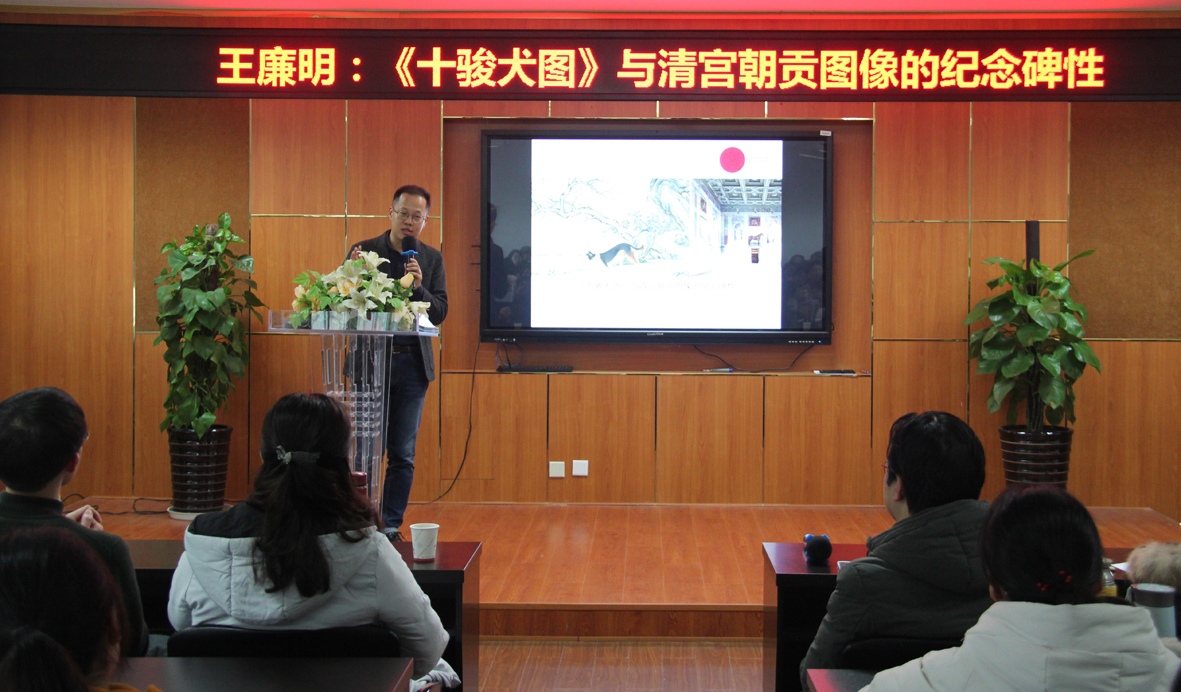 1月3日,德国海德堡大学副教授王廉明老师受邀莅临时时彩 ,在农历狗年年终之际深入解析清宫中的猎犬图,为广大师生带来了一场精彩的学术讲座“《十骏犬图》与清宫朝贡图像的纪念碑性”。讲座由时时彩 副院长张晓剑老师主持,美术学系教师、硕士生和本科生近百人到场听讲。 王廉明老师出生于浙江温州,2006年留学欧洲,攻读博士期间师从汉学界研究中国艺术的权威雷德侯教授,现为海德堡大学东亚艺术史研究所副教授、马克斯普朗克艺术史研究所访问研究员(2018-19),主要从事明清艺术史、全球/跨文化艺术史的研究,已出版德文专著2部,编著2部,发表德文、英文、中文论文数十篇。 讲座着眼于一般美术史研究不怎么关注的猎犬图,对北京故宫博物院藏、艾启蒙绘《十骏犬图》册页的制作背景、功能进行了抽丝剥茧般的考察。王廉明老师查阅了大量清宫原始档案,考证了艾启蒙《十骏犬图》的创作时间和具体内容,并比对郎世宁绘《十骏犬》轴以及其它朝贡动物画,发动多方资源重构当时的历史语境,揭示了制作这类画所隐含的政治意义。他指出,这些良犬自春秋时期就已有记载,乾隆皇帝把少数民族和大清的征服者进献来的名犬制作成图像(且多次复制),是要模仿周朝的朝贡关系,将其纳入有关中央和地方朝贡关系的政治叙事中,为大清统治的合法性提供象征性表达。王老师还从观看对象、摆置空间、绘画形制等方面入手,探讨了清宫朝贡动物画的纪念碑性问题,提出了“图像纪念碑”(pictorial monument)的概念。 张晓剑老师在总结中说,西方学界已经大大拓展了艺术史研究的范围,这需要研究者有更敏锐的理论嗅觉、更宽广的视野,王老师用大量一手材料的采掘、扎实细致的考证和别开生面的阐发,为我们示范了当下艺术史研究的方法、趋势和境界。 在交流环节,有同学和老师就图像的政治功能、“纪念碑性”概念的内涵和适用性、乾隆的行乐图等问题向王廉明老师提问,王廉明老师的回答把讲座主题进一步引向深化。