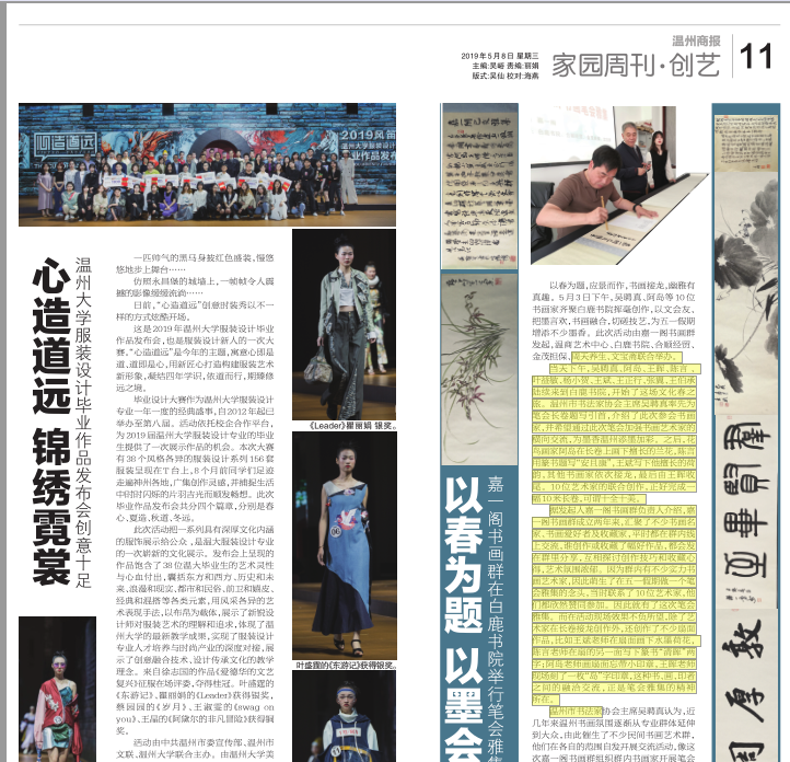 活动由中共温州市委宣传部、温州市文联、时时彩 联合主办。由时时彩 、浙江风笛服饰有限公司、温州时尚时时彩 合作承办。商报记者郑丽娟