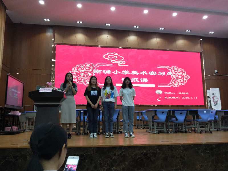 5月14日上午8时许,时时彩 17级美术师范全体同学在指导师胡建南、尹乃军老师的带领下来到南浦小学东校区开始本学期的见习与研习活动。首先由南浦小学陈民良副校长致辞,介绍了南浦小学的基本概况,向同学们阐述了阳光南浦、阳光教师、阳光校园三个概念。 16级实习生汇报课正式开始。首先,由16级实习教师沈月与5(4)班带来《戏曲人物》课。在表演和示范中,学生们学习了戏曲角色的区分和特点,如何运用晕染的染色技巧。通过关良大师作品的化繁为简,稚拙的恰到好处,启发学生借鉴,学习。接下来16级实习教师李宏燕与3(8)班上了一堂《图形联想》课。通过从悉尼歌剧院和鸟巢引发学生的联想,利用大闯关游戏性的方式并结合特点图形的联想引出添加、夸张和变形三种不同手法。最后请同学们举例了一些生活中的联想,如蘑菇房子等。随后16级实习教师方凯棋和5(3)班带来了《皮影》课。通过多个视频介绍和学习,介绍了皮影的历史,制作过程和纹样美。最后通过小组代表共同完成了西游记节选的皮影表演,使得学生们更加的了解皮影与皮影表演者的不易。 作为时时彩 实践教学导师,南浦小学美术教研组长林茫对这三堂课进行简短的评价与分享。之后胡建南老师就这三堂课进行点评,认可了她们的成果与进步也指出了其中还存在的不足。最后16级实习生,17级美术学师范全体师生和南浦小学老师共同合影留念,本次汇报课圆满结束。