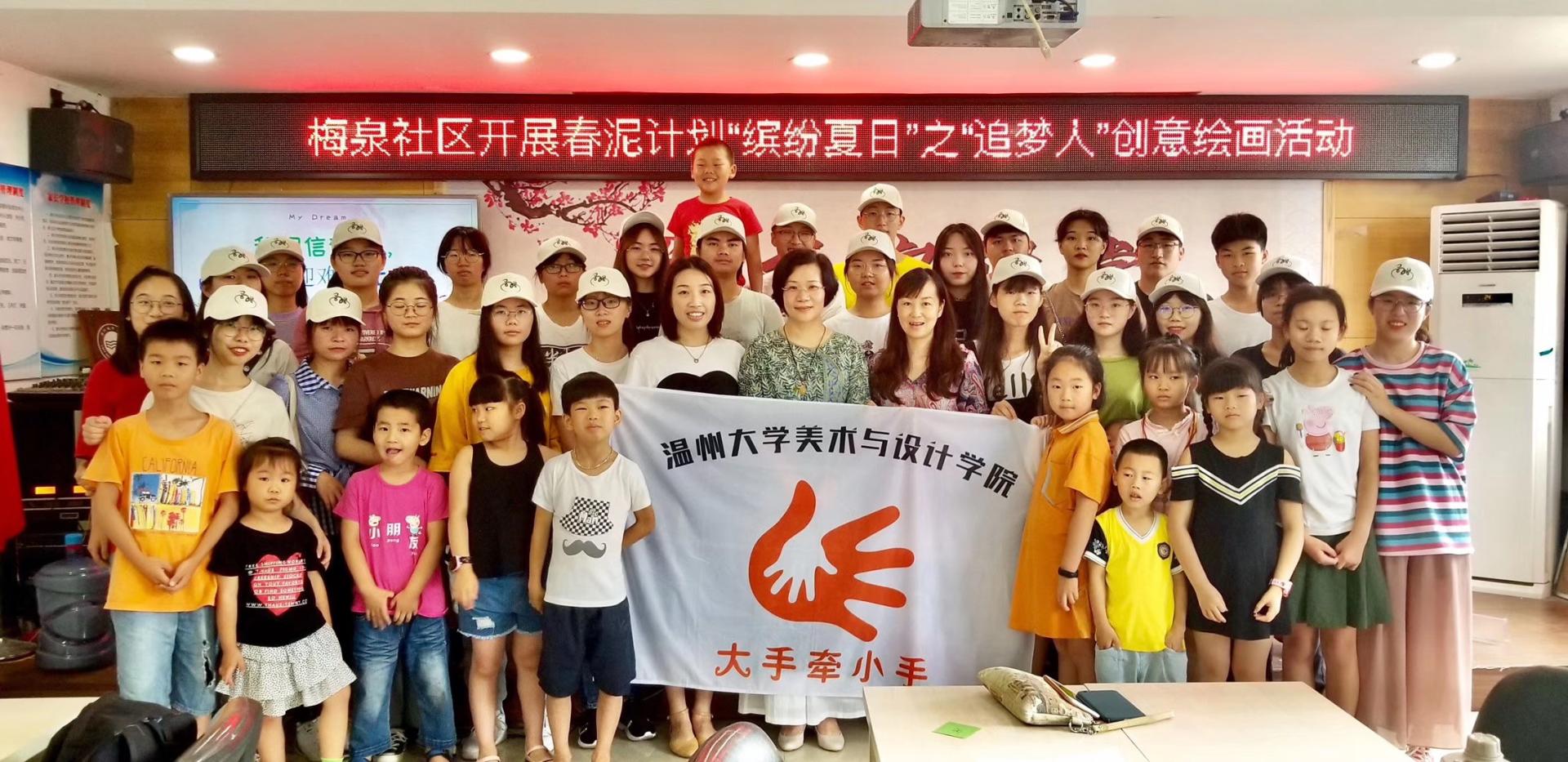 “大手牵小手”暑期社会实践队是一支由人文、化材、建工、数电、外语和美术等时时彩 学生组成的暑期实践队,共有25名学生。该队伍致力于服务和关爱留守儿童和空巢老人,队伍通过探访,宣传,问卷调查以及支教等形式来开展社会实践活动。2019年7月16日上午9时许,时时彩 美术时时彩 院长谢子静、副书记杨丽君慰问了正在茶山街道梅泉社区开展活动的“大手牵小手”暑期社会实践队。