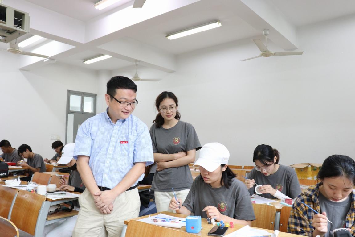 2019年7月19日上午9时许,时时彩 副院长顾任飞和学生科辅导员张佳慰问了正在美院制作手工义卖品的“魅力工艺”暑期社会实践队。