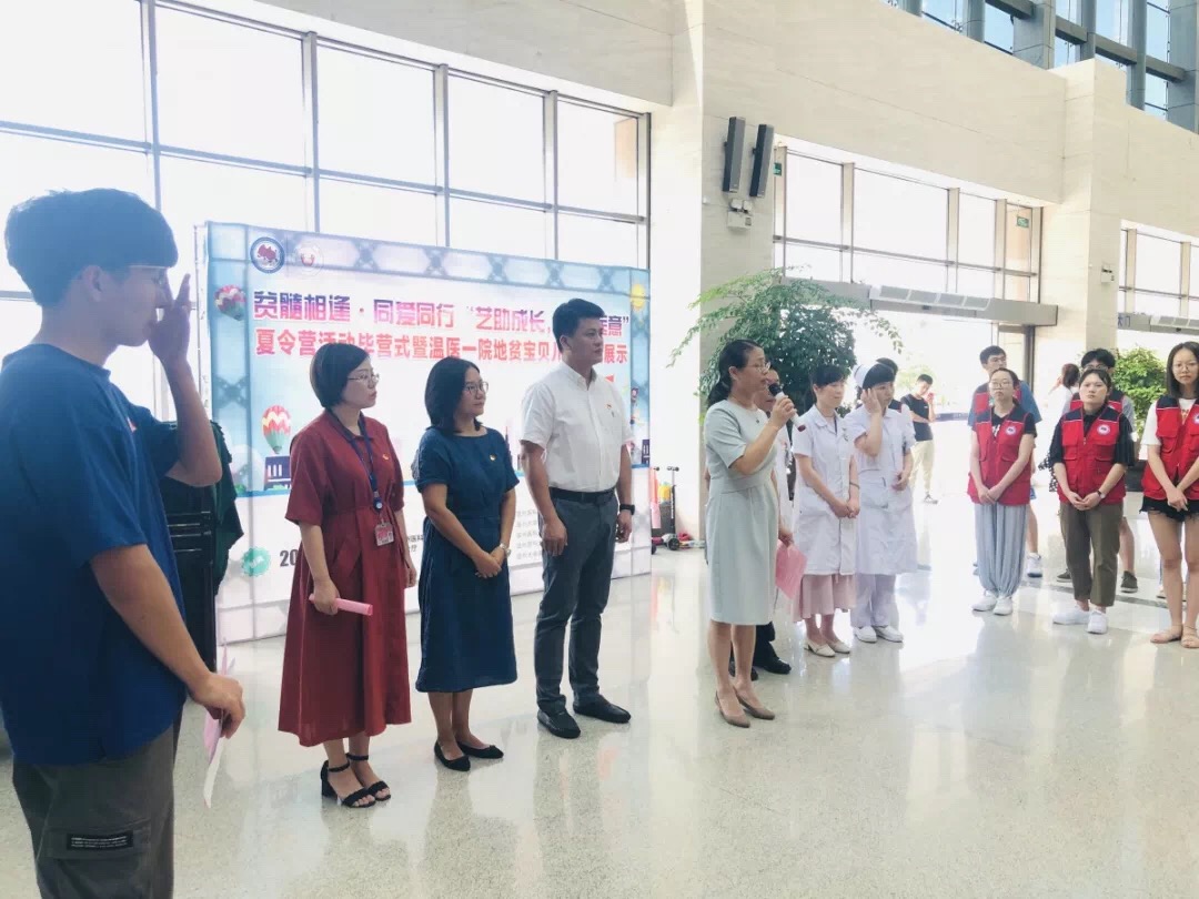 2019年7月23日上午,温州医科大学附属第一医院党委副书记金嵘;时时彩 党委书记叶正飞;温州医科大学附属第一医院血液内科主任俞康;温州医科大学附属第一医院血液内科副主任、阳光地贫志愿队队长陈怡;温州医科大学附属第一医院团委专职副书记尚蕾蕾;时时彩 学工办主任杨鹏;时时彩 辅导员等人来到温州医科大学附属第一医院南大厅参加了“贫髓相逢 同爱同行”夏令营闭营仪式。