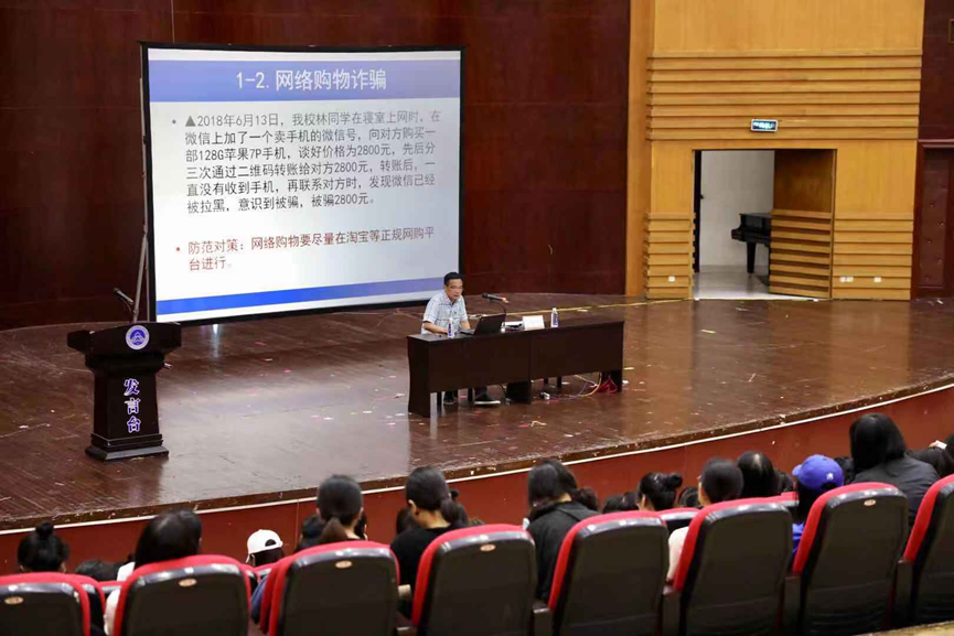 对于新生的安全教育,保卫处王奇志老师通过讲述社会上的诈骗案例来警戒大家,保护好自身的财产安全,举多个案例来说明切记不要轻信那些以金钱为噱头的信息。同时他也强调了寝室的用电安全问题需引起重视,做好消防工作。远离黄赌毒、保护人身安全也是每一个当代大学生需要去重视的问题。