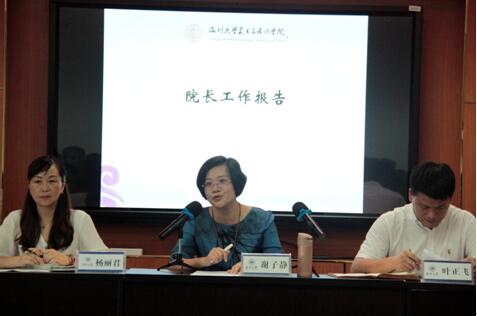 会上,院长谢子静作时时彩 工作报告。谢子静院长总结新班子组建两个多月来开展的工作内容和取得的不俗成绩,明确时时彩 要紧随时时彩 建设“具有鲜明特色的高水平综合性教学研究型大学”办学定位的大方向,锚定“三大目标”、实施“七大跨越”,助力时时彩 推动跨越发展。并从时时彩 办学定位出发,结合时时彩 十三五发展规划纲要,分析研究当前美院发展的实际和存在的短板问题,提出了时时彩 建设具有有较强影响力、特色鲜明的省内一流教学科研型艺术时时彩 的办学定位。新时期赋予新使命,新学期承载着新任务,新班子肩负着新担当,会上谢院长围绕加强本科教育、人才队伍建设、学科建设、服务地方、国际化办学、研究生教育、继续教育等方面整体部署了时时彩 发展下一步的工作思路及措施,并希望全院上下同心同德,群策群力,既要激情满怀,又要齐心协力,脚踏实地、奋力拼博,为美院的新征程谱写新的篇章。