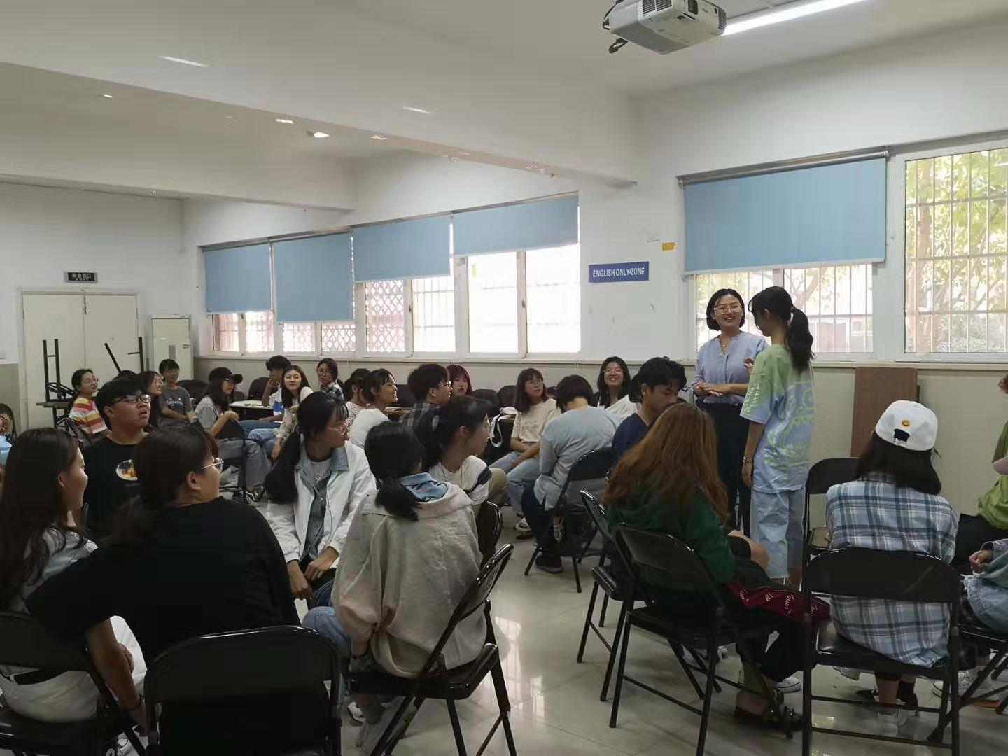 活动内容主要有“热身运动”,“松鼠抱大树”,“你有我没有”。其中“松鼠抱大树”这一游戏将活动气氛迅速升温,因游戏中“男女搭配”、“心有千千结”这两个特征,使得一张张陌生的脸庞迅速火热起来。而“你有我没有”这一游戏,让同学们真正地了解彼此熟悉彼此。小组成员伸出十个手指,当介绍的同学每说一个自己特有的经历或者特征时,没有相似经历的同学可将手指减少。第一个减到零的同学需自觉表演节目,游戏在紧张刺激的环境下进行,这快速拉近了同学们之间的距离,更好地了解彼此。最后,大家互相拥抱,感谢彼此,幸运相识。