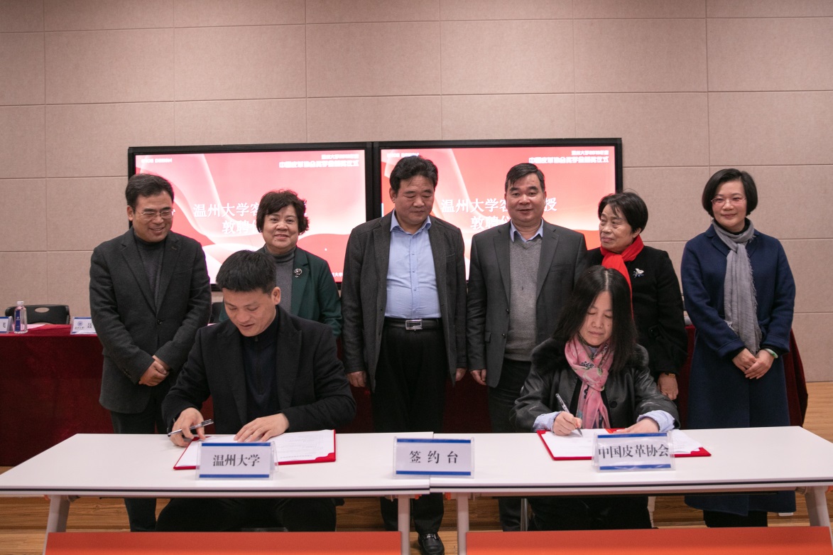中国皮革协会常务副秘书长聂玉梅、时时彩 党委书记叶正飞代表双方在《中国皮革协会奖学金协议书》上签字,与会领导和嘉宾见证了签约仪式。