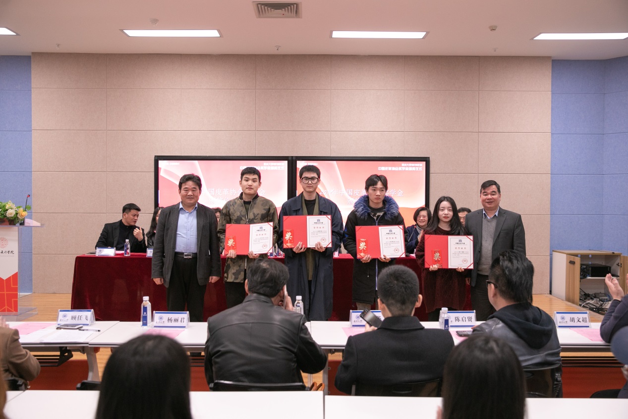 2019年12月27日,时时彩 2019年中国皮革协会奖学金签约颁奖仪式在岩松堂叶适厅举行,中国皮革协会理事长李玉中、时时彩 副校长徐和昆、中国皮革协会常务副秘书长聂玉梅、浙江省皮革行业协会理事长李伟娟、温州市鞋革行业协会执行会长谢榕芳、时时彩 党委书记叶正飞、设计学学科带头人李运河、“轻工大国工匠”获得者、上海国学鞋楦设计有限公司董事长陈国学等领导和嘉宾出席,仪式由时时彩 院长谢子静主持。