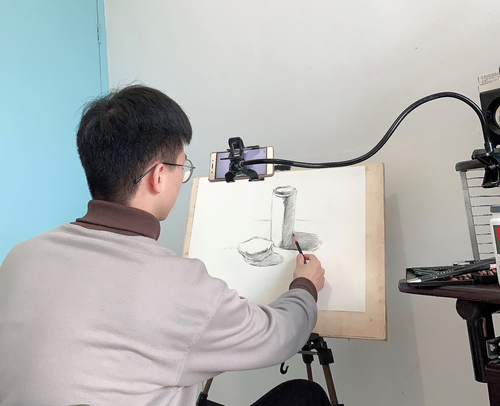 作为一名毕业生党员,16级美术师范专业姚哲文积极投入杨梅红国际私立美校的线上教学辅导工作,目前所带的班级临近“浙江省初中生艺术特长生小B级”考试,确保这批孩子在考级中有良好的发挥是对他教学工作最大的考验。对于他的工作态度和专业能力,美校负责人十分赞赏,“他对学生热情,能够和学生很好地交流,专业技能过硬,特别是速写功底深厚,很受家长和学生的信赖和好评。”