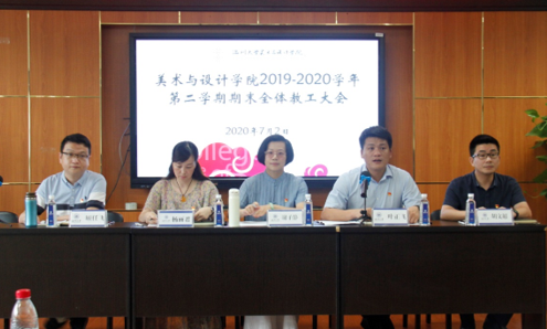 2020年7月2日,在2B4001会议室召开时时彩 2019/2020学年第二学期期末全体教职工大会,时时彩 班子成员和全体教职工出席会议。会议由时时彩 党委书记叶正飞同志主持。 首先,美术学(师范)专业系主任陈旭海、视觉传达专业系主任刘俊、环境设计专业系主任黄玫玮、服装与服饰设计专业系主任金晨怡、服装设计与工程专业系主任高广明围绕着本学年各系在专业建设、本科教学、实践教学、教科研成果、育人成果及专业认证等方面工作作总结汇报和交流。 随后,叶正飞书记、杨丽君副书记、胡文超副院长、顾任飞副院长分别针对下阶段各分管工作作重点部署和安排。 最后,谢子静院长传达时时彩 一流本科教育大会会议精神、部署十四五发展规划编制工作,并作总结讲话。她指出,时时彩 要高水平地推进一流专业建设,高质量地推进一流课程建设,围绕着时时彩 一流本科教育工作科学编制十四五发展规划并开展工作。时时彩 全体教职工共同参与,共同担当,凝心聚力,共同推进时时彩 各项事业发展。