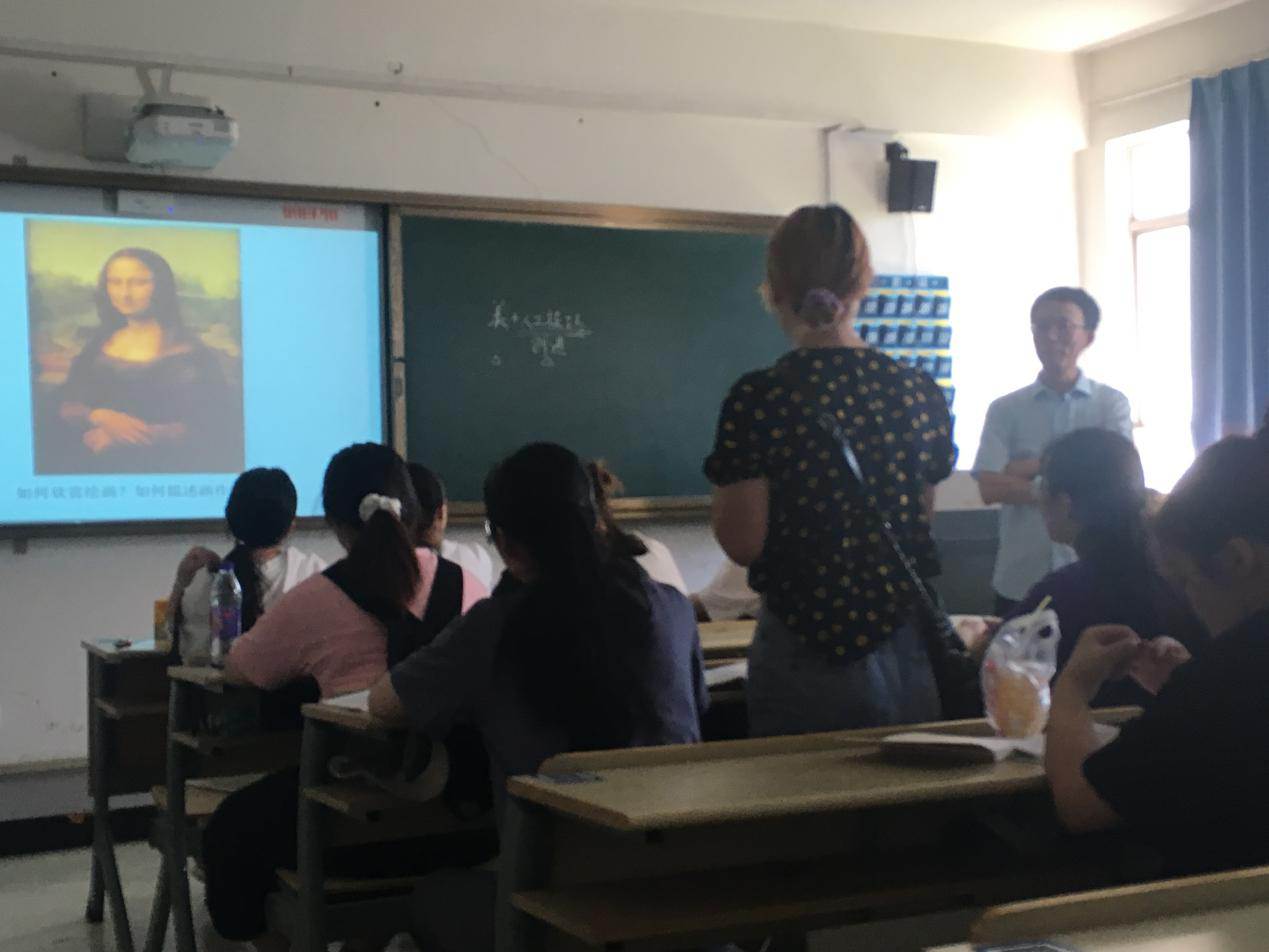周四上午校领导潘玉驹、部门领导李密、校督导袁建国、美院领导谢子静、胡文超、美院教务科黄呼尔励,听了18美师3班《美术概论》张晓剑老师的课,张老师的课程幽默风趣有内涵。授课导入以3个为什么引导学生参与探讨,引入案例与实际例子引起学生深入思考,通过知识过渡与展开引导学生深化对问题的认识。张老师教态自然,语言表达逻辑强,在讲台、屏幕、学生之间游走保持与学生交流,达到了很好的积极互动与沟通效果,受到了听课领导的一致好评。