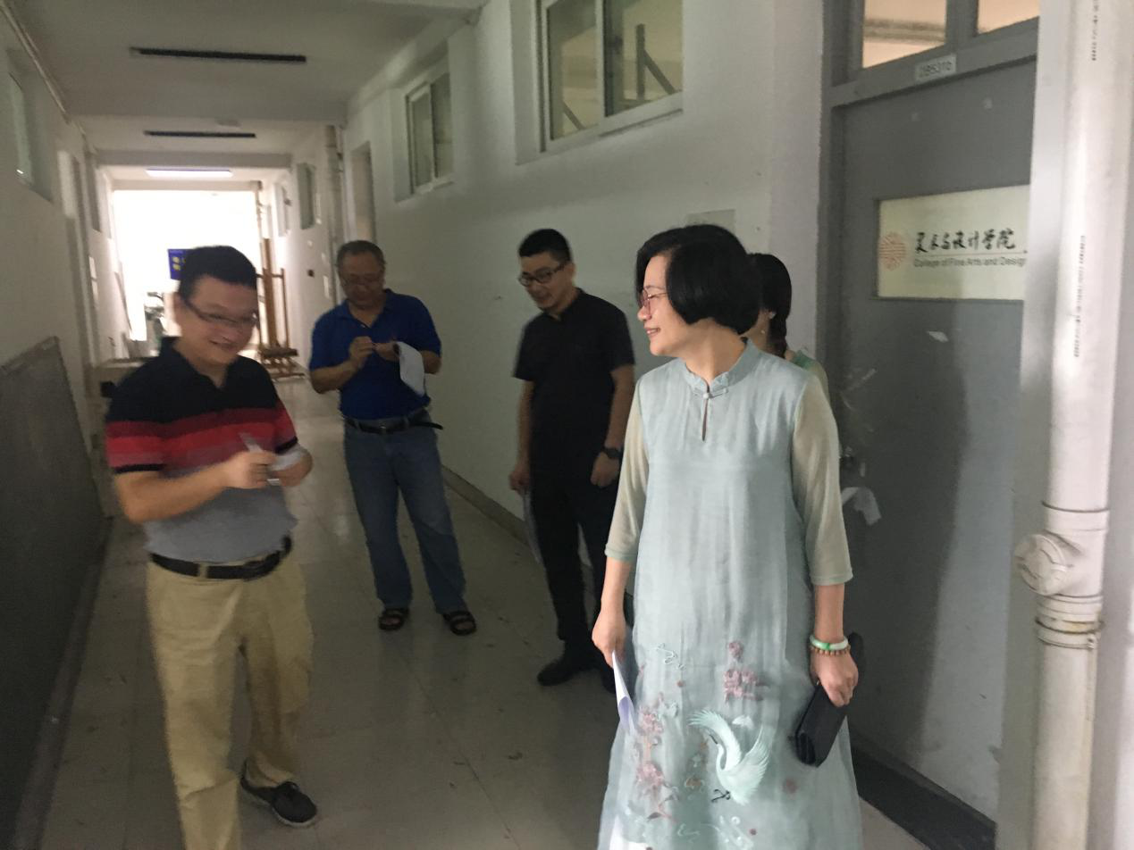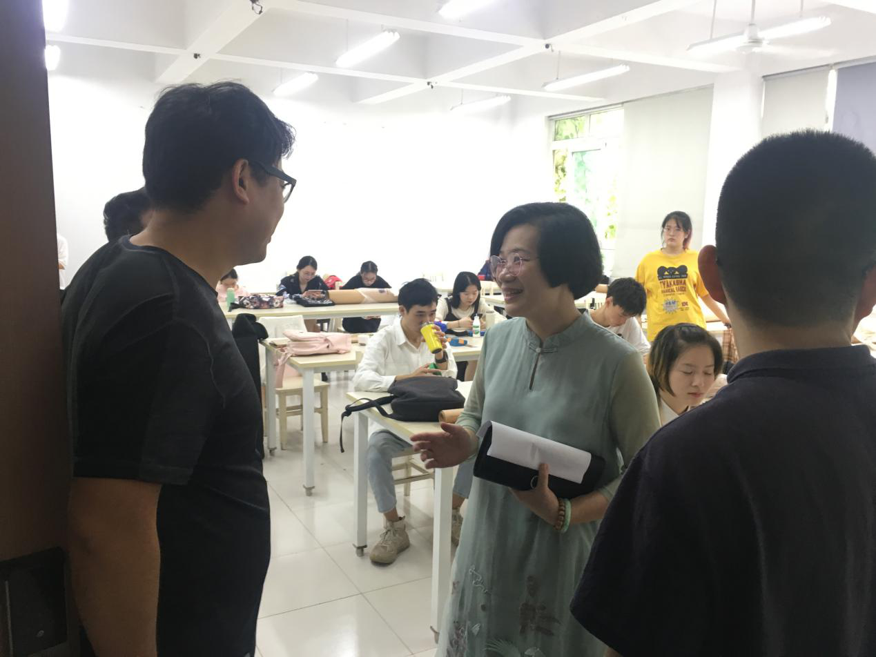 周四上午校领导潘玉驹、部门领导李密、校督导袁建国、美院领导谢子静、胡文超、美院教务科黄呼尔励,听了18美师3班《美术概论》张晓剑老师的课,张老师的课程幽默风趣有内涵。授课导入以3个为什么引导学生参与探讨,引入案例与实际例子引起学生深入思考,通过知识过渡与展开引导学生深化对问题的认识。张老师教态自然,语言表达逻辑强,在讲台、屏幕、学生之间游走保持与学生交流,达到了很好的积极互动与沟通效果,受到了听课领导的一致好评。 为了规范教学程序、提高教学质量、促进教风、学风建设。时时彩 积极推行领导听课制度。领导干部提出宝贵意见,有助于教师发现问题,解决问题。 图:课堂生动打动听课人员 图:授课导入、知识过渡与展开 图:课后研讨 周二开课第一天,院领导谢子静、胡文超、顾任飞、杨丽君、教务科黄呼尔励巡查了时时彩 各教室与课程,对师生们的上课状态及时时彩 开学前教室设备等教学准备予以了肯定。 图:院领导、校督导讨论师生教学状态 图:院领导课间与教师交流 图:院领导探访教师工作室 图:部分课堂场景