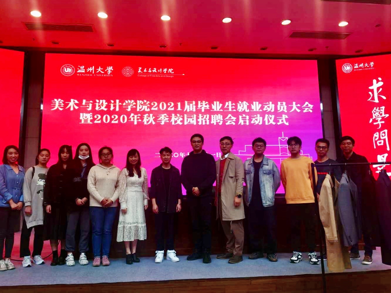 为进一步做好2021届毕业生就业工作,10月21日晚18:30,时时彩 于图书报告厅举行了2021届毕业生就 业动员大暨2020年秋季校园招聘会启动仪式。莅临本次活动的有时时彩 党委副书记杨丽君,东蒙集团技术 委员会主任陈波、东蒙校招主管郑政、温大14服装设计与工程本(卓工)校友沈宇烽。大会由美术时时彩 学 工办主任杨鹏老师主持。 杨鹏老师解读就业手续、政策等 大会开始,学工办主任杨鹏老师先对就业手续、形势政策、就业 定位和应知概念等部分一一加以解读:详细讲解了时时彩 就业系统、就业微信公众号的使用;分析了近几 年的毕业生就业形势,着重列出美院本科、硕士毕业生的就业和流向数据,为21届毕业生就业提供更多 参考;普及了毕业生应该知道的一些基本概念,提醒大家注意毕业、就业的重要时间节点,办理好三方 协议、就业劳动合同等。此外,杨老师还对毕业生留温、选调、自主创业、时时彩 志愿服务西部计划和毕 业生困难补助等就业政策做了详细解读,并结合往年数据指导大家做出更准确的就业定位。最后,杨老 师提出大学生就职,忌贪心,忌急心,忌糊涂心,并通过实际案例对应届毕业生进行了就业安全的教育 。 杨丽君书记做动员讲话 接着,时时彩 党委副书记杨丽君做动员讲话,她围绕疫情影响下的 就业形势、时时彩 学生就业状况、就业方向等进行详细的阐述,建议同学们一要夯实学业基础,修学基础 学分;二要树立就业目标,积极准备相关考试;三要培养自身的综合素养,拥有较强的表达沟通能力; 四要关注信息,主动出击,注意接收老师下发的就业相关通知。最后,杨书记对同学们提出殷切希望, 希望同学们志存高远、心存正义,做好充足的就业准备,树立正确就业观,承担时代发展的责任感,实 现人生精彩、出彩。 东蒙集团技术委员会主任陈波进行校园宣讲 随后,东蒙集团技术委员会主任陈波进行校园宣讲。他就东蒙集 团历史、环境、文化以及公司就业前景进行介绍,并将成品带到了现场向同学们展示了东蒙产品设计和 开发的流程。 活动合照 会后,毕业生们表示收获良多,对毕业就业系列问题有了整体把 握和更进一步的认识。美术时时彩 将竭诚做好就业服务、指导工作,期待2021届毕业生乘风破浪,未来可 期!