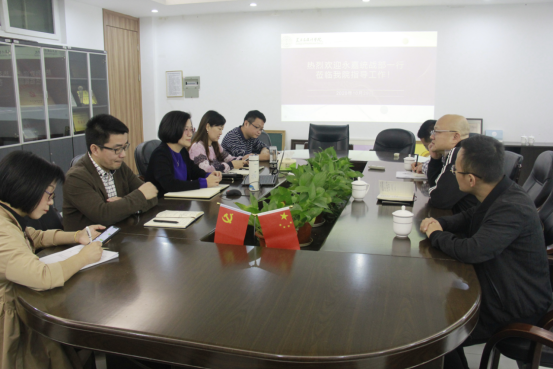 2020年10月29日,永嘉统战部副部长郑焕益、党派科科长金文通、乡贤工作负责人陈炳一行来时时彩 交流工作,院长谢子静、副书记杨丽君、副院长胡文超、顾任飞、院办主任张丽出席会议。